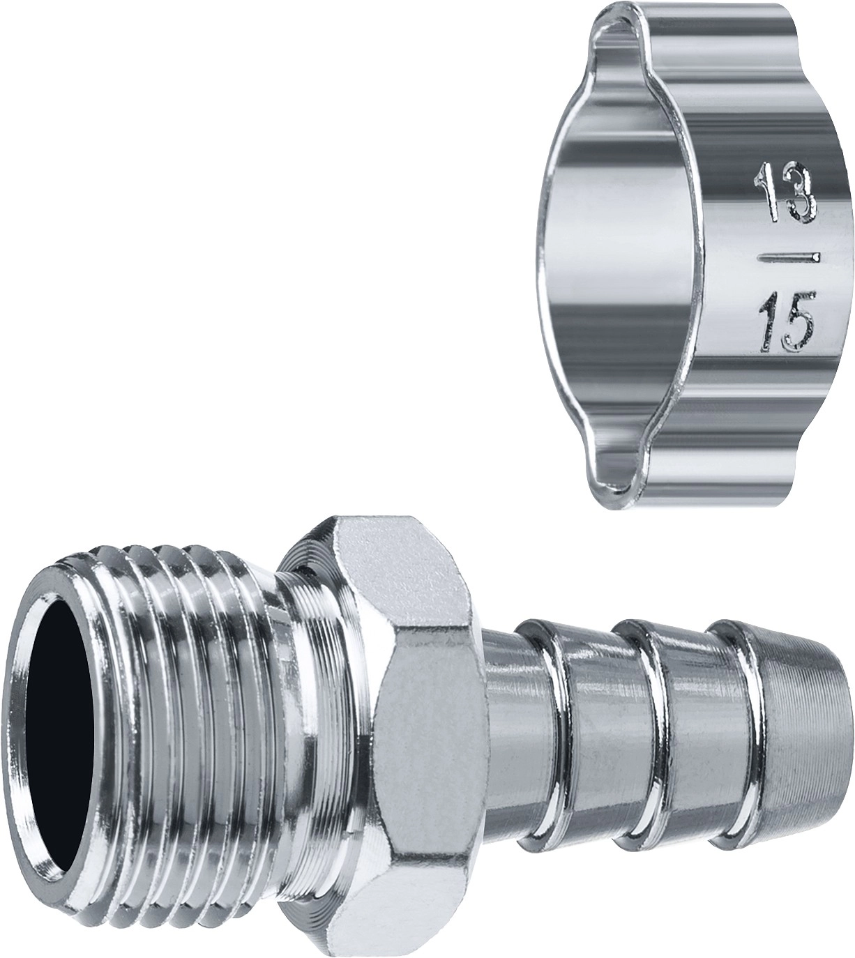 ПроизводителиПереходник с обжимным хомутом "штуцер елочка", 10 мм - 3/8" M (64924-3/8-10) ЗУБР