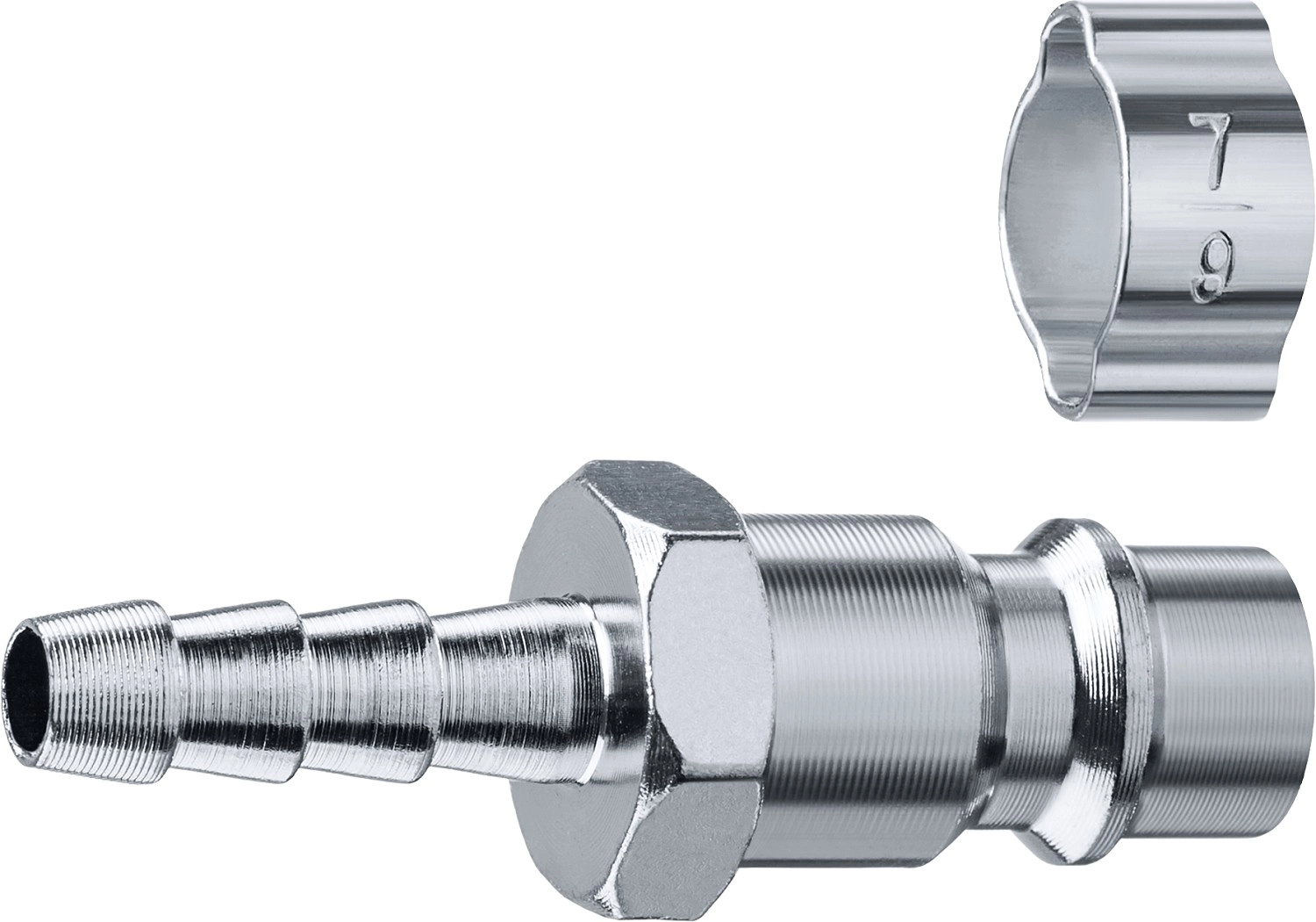 ПроизводителиПереходник с обжимным хомутом "штуцер елочка", 6 мм - рапид штуцер (64918-06) ЗУБР