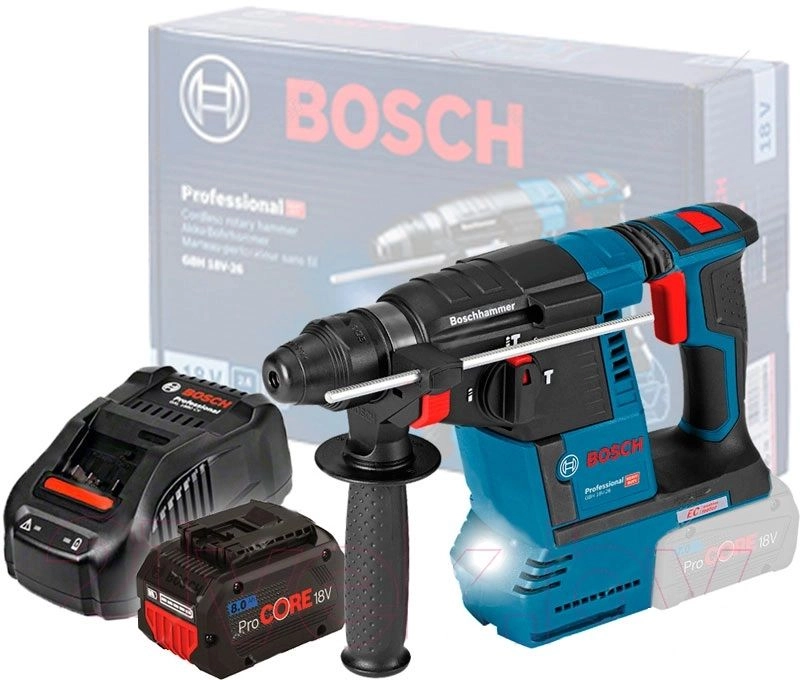 ПроизводителиПерфоратор аккум. GBH 18V-26 (SDS-plus, 18В,1акк.х8.0 А/ч, 2.6 Дж,кор.)(0 615 990 M3N) BOSCH