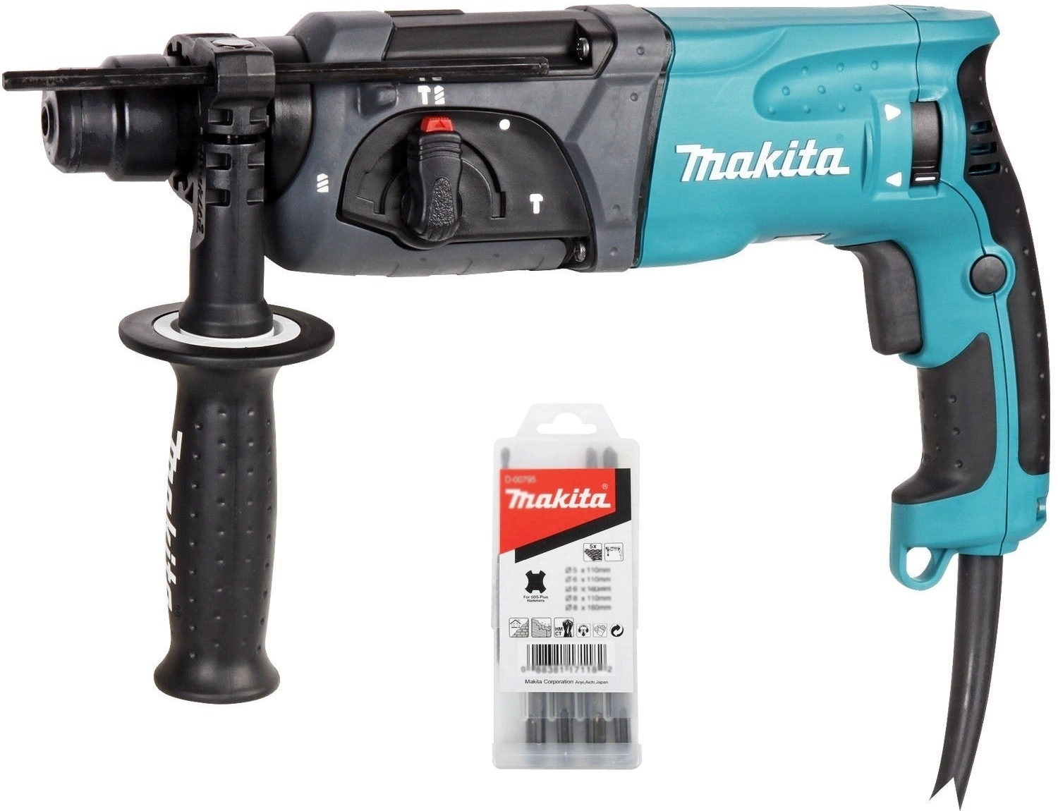 ПроизводителиПерфоратор HR 2470 X15 + набор буров D-00795 (SDS-plus, 780 Вт, 2.7 Дж, чем.) MAKITA
