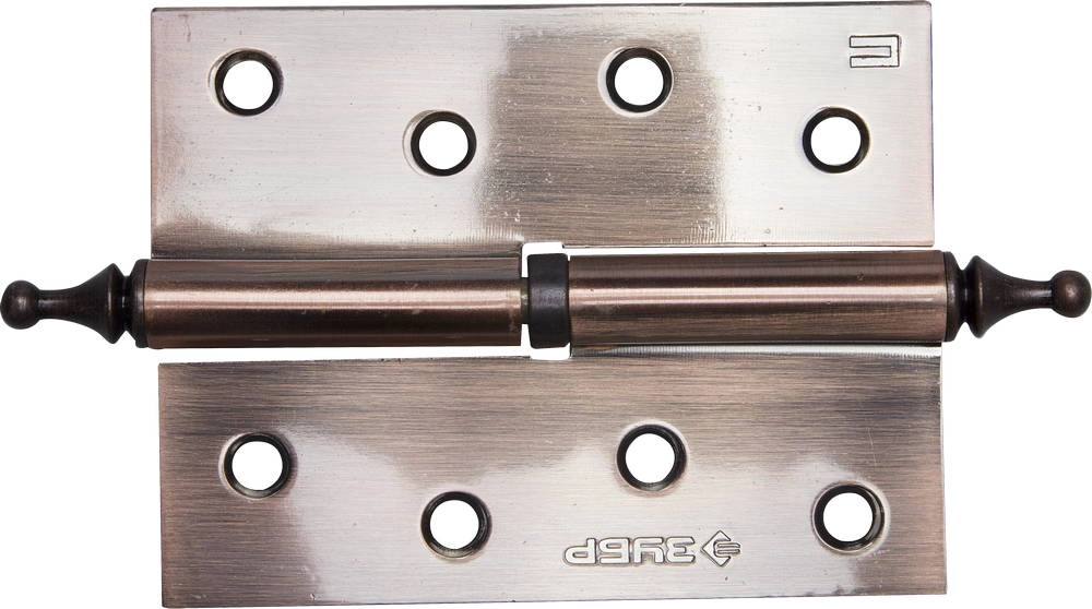 ПроизводителиПетля дверная разъемная ЗУБР "ЭКСПЕРТ", 1 подшипник, цвет ст. медь (AC), правая, с крепежом, 100х75х