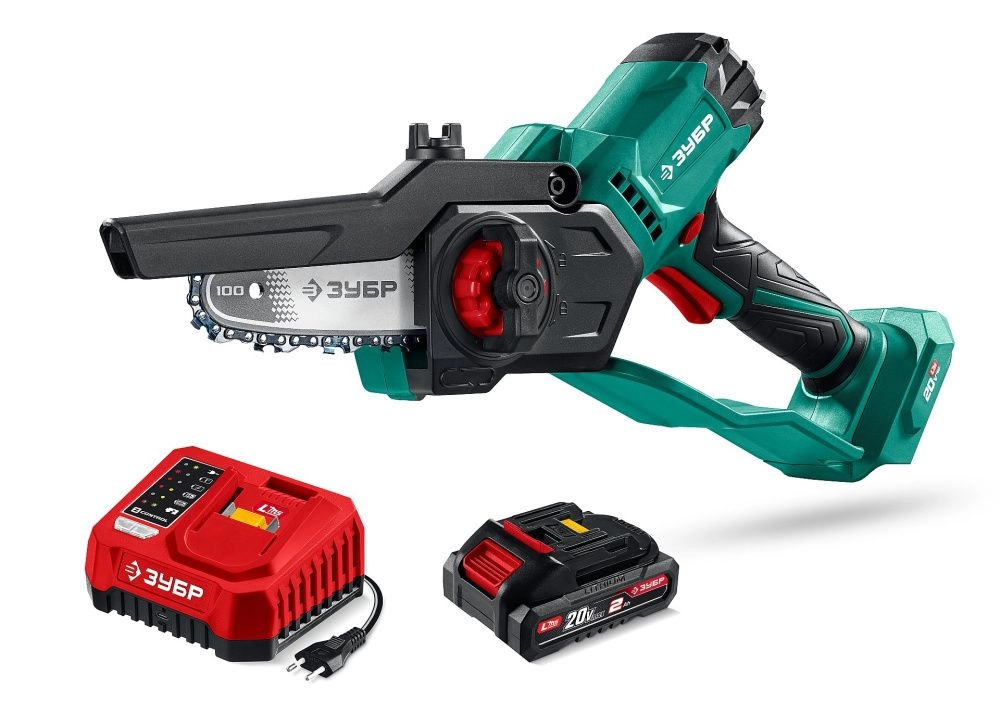 ПроизводителиПила аккум. цепная ПЦА-2010-21 (20В, 1 аккум. х 2.0 А/ч, шина 10см, шаг 3/10, шир. паз. 1.1мм) ЗУБР