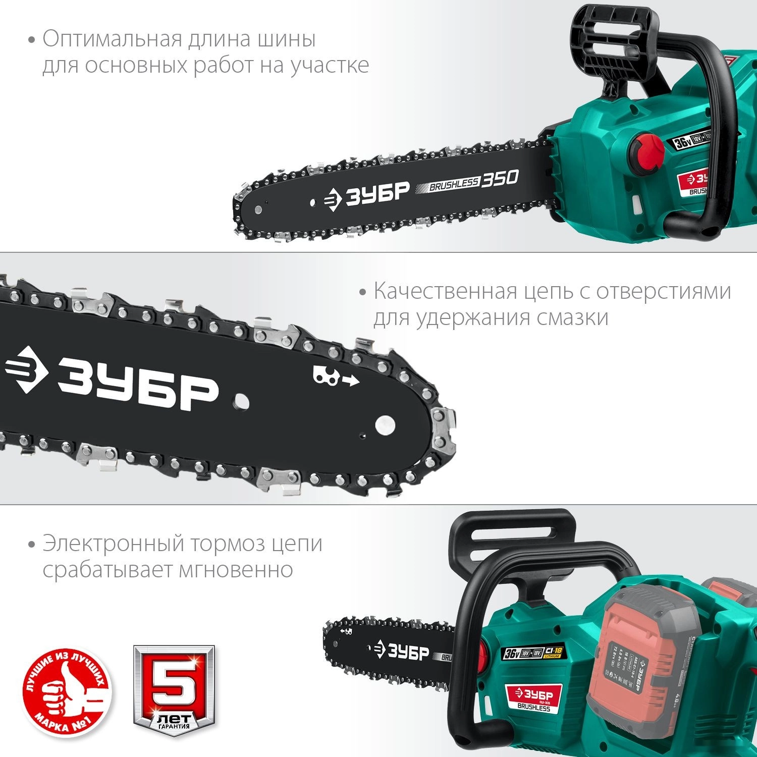 ПроизводителиПила аккум. цепная ПЦЛ-3635 (36В, без АКБ и ЗУ, шина 35см, шаг 3/8, шир. паз. 0.05мм) ЗУБР