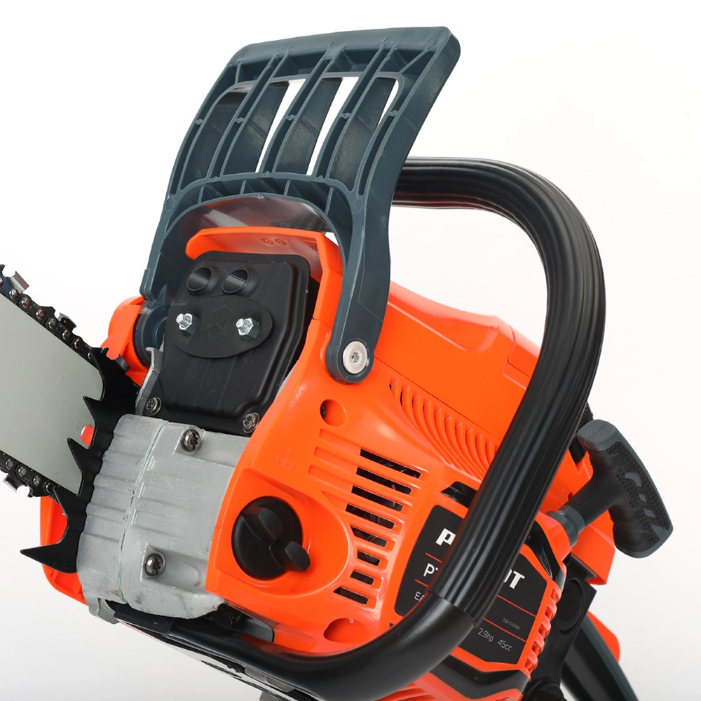 PT 4518 – мощная бензопила, используемая в строительстве, заготовке дров, валке деревьев диаметром до 40 сантиметров. Надежный 2т двигатель с увеличенным моторесурсом оснащен системой легкого пуска Easy Start - она снижает усилие на стартер на 60% в сравнении с бензопилами аналогичной категории. Система антивибрации, сбалансированная конструкция и эргономичная рукоятка обеспечивают комфорт при продолжительной работе и точный распил. Пила оборудована автоматической системой смазки цепи. Для безопасной работы пила оснащена уловителем цепи, тормозом цепи, предохранителем клавиши старта и защитным щитком. Легкий доступ к фильтру и свече зажигания позволяют самостоятельно проводить техническое обслуживание. В комплекте емкость для топливной смеси, защитный кожух.