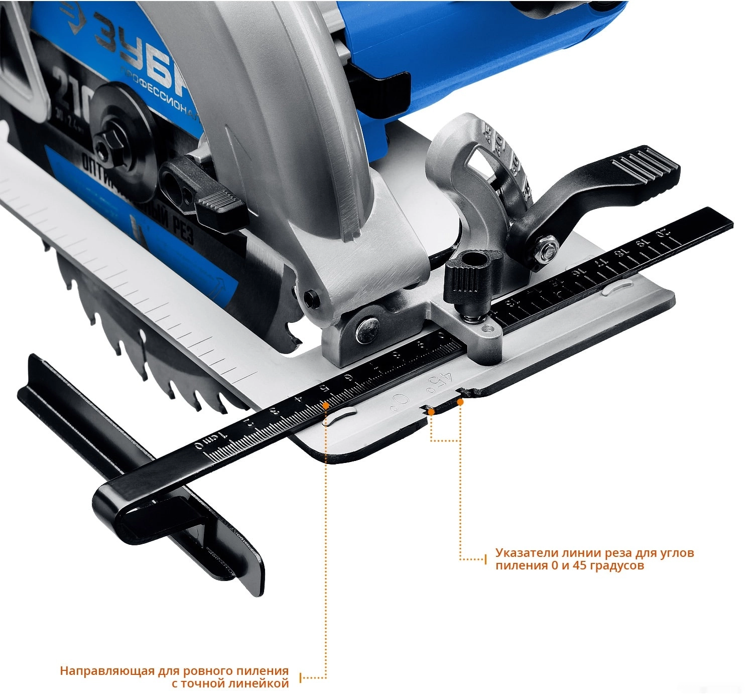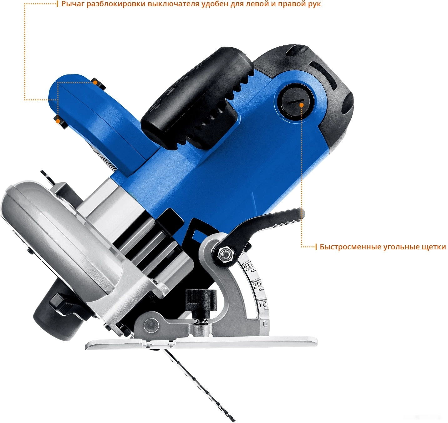 Бесступенчатая регулировка глубины и угла пиления с удобными шкалами для точных работ