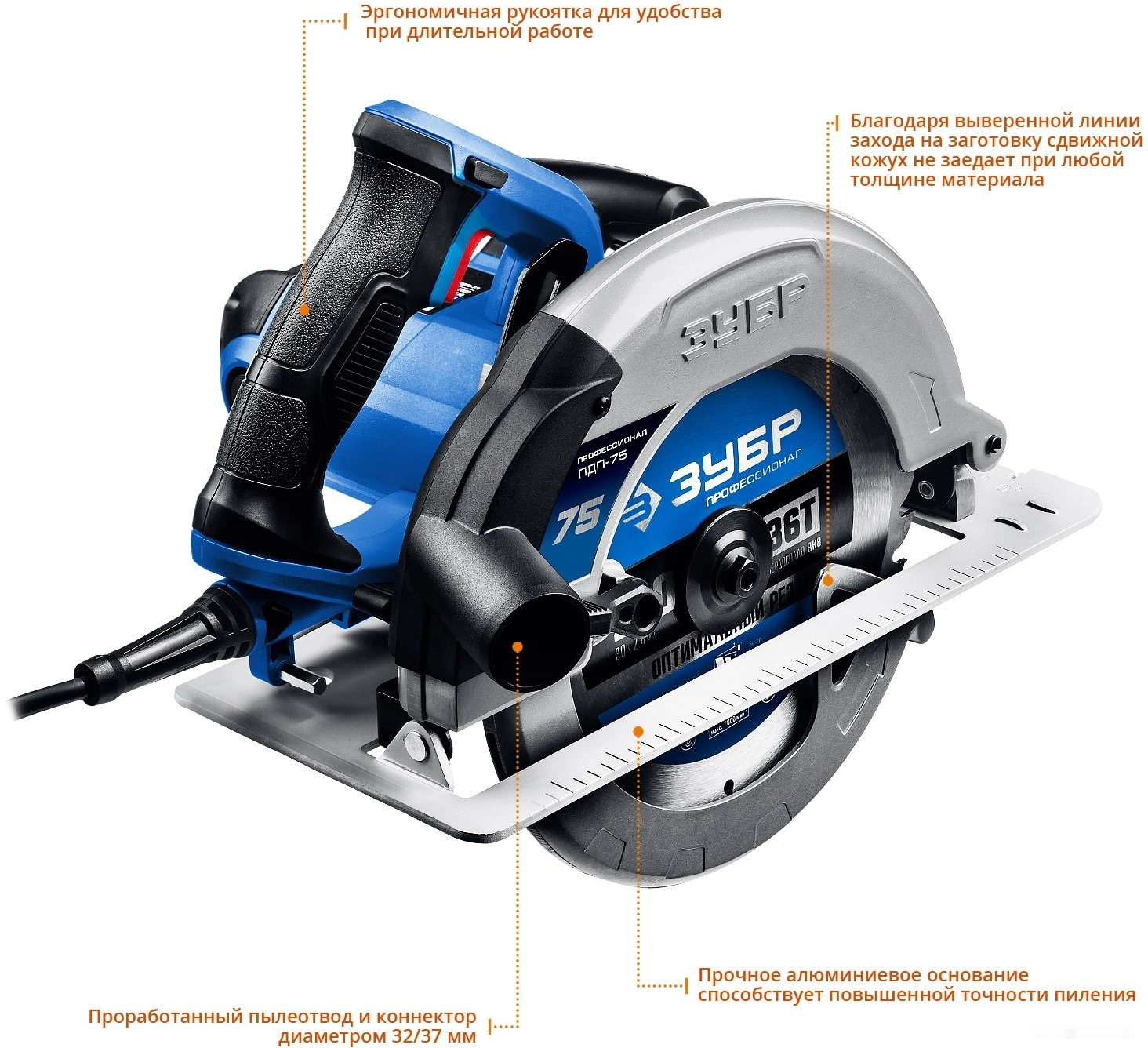 ПроизводителиПила циркулярная ПДП-75 (2000 Вт, диск 210х30 мм, до 75 мм, кор.) "Профессионал" ЗУБР