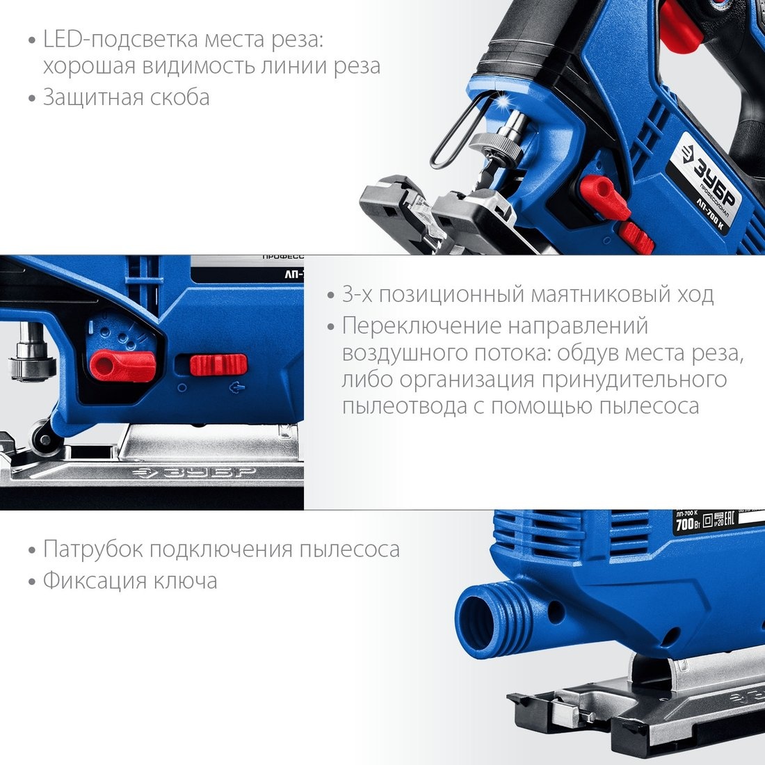 ПроизводителиПила лобзиковая ЛП-700 К (700 Вт, до 90 мм, чем.) "Профессионал" ЗУБР