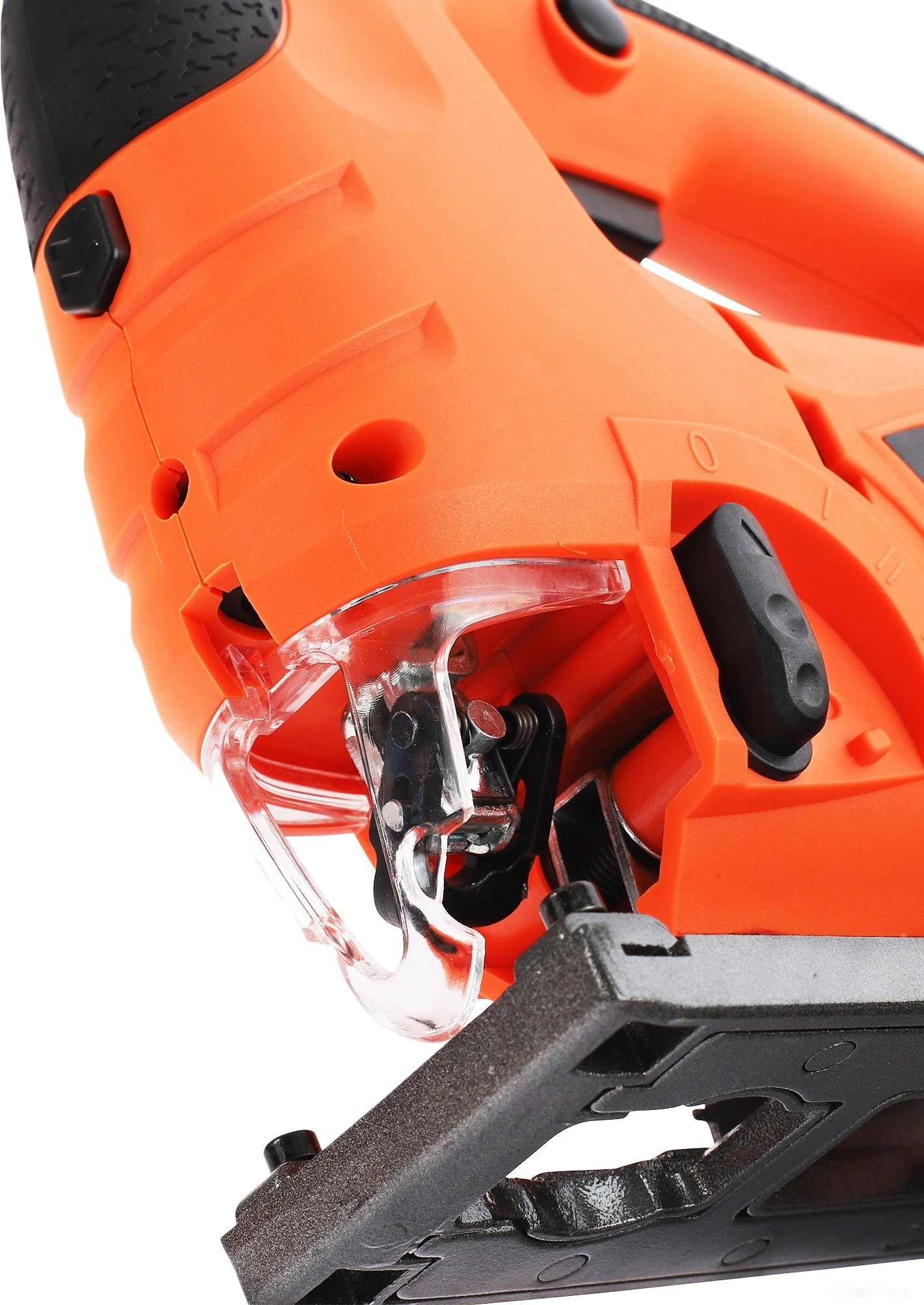 • В конструкции лобзика предусмотрен прозрачный защитный экран для обзора рабочей зоны, что создает