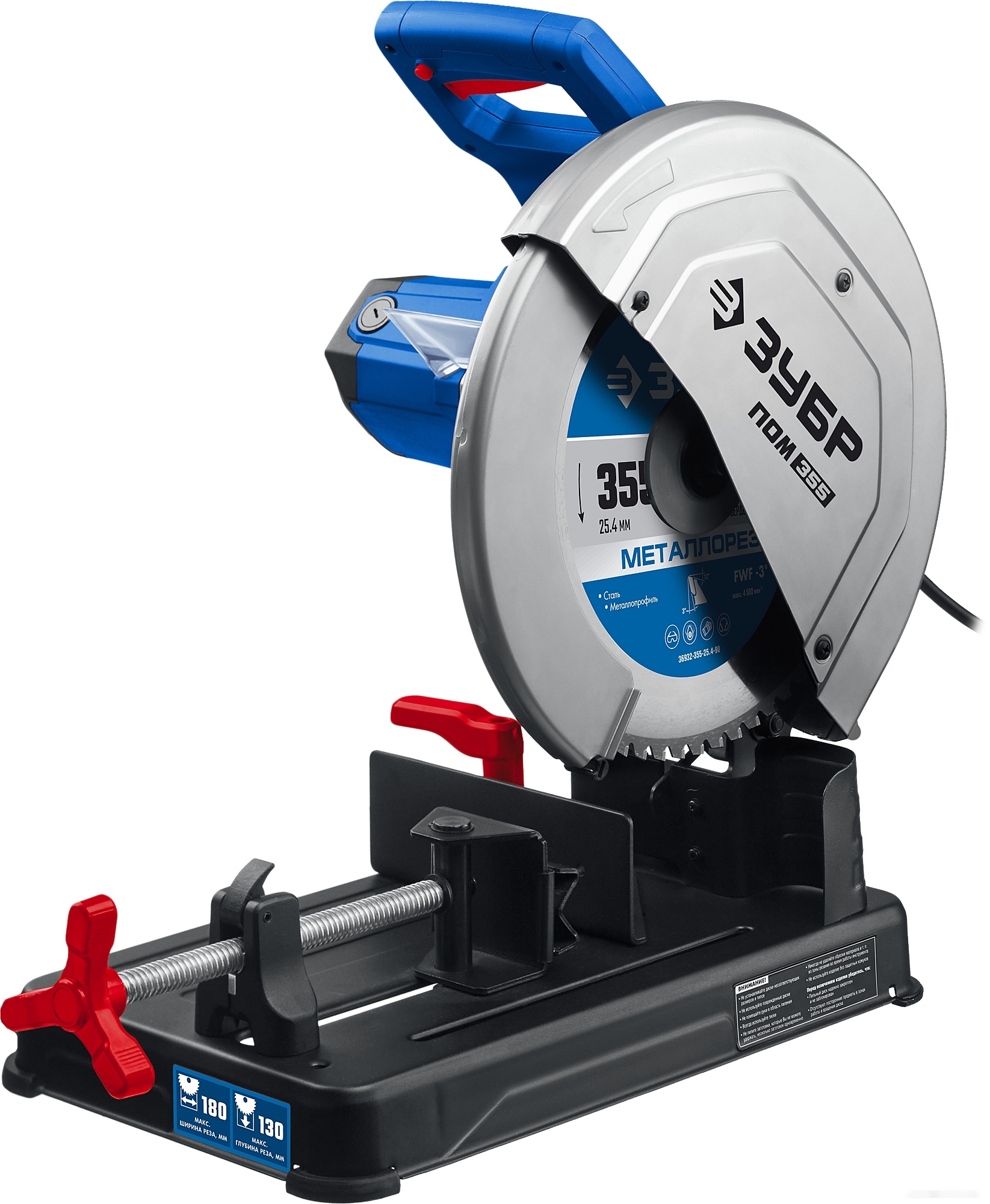 ПроизводителиПила отрезная по металлу ПОМ-355 (2000 Вт, диск 355х25.4 мм, рез 130 мм, кор.) "Профессионал" ЗУБР
