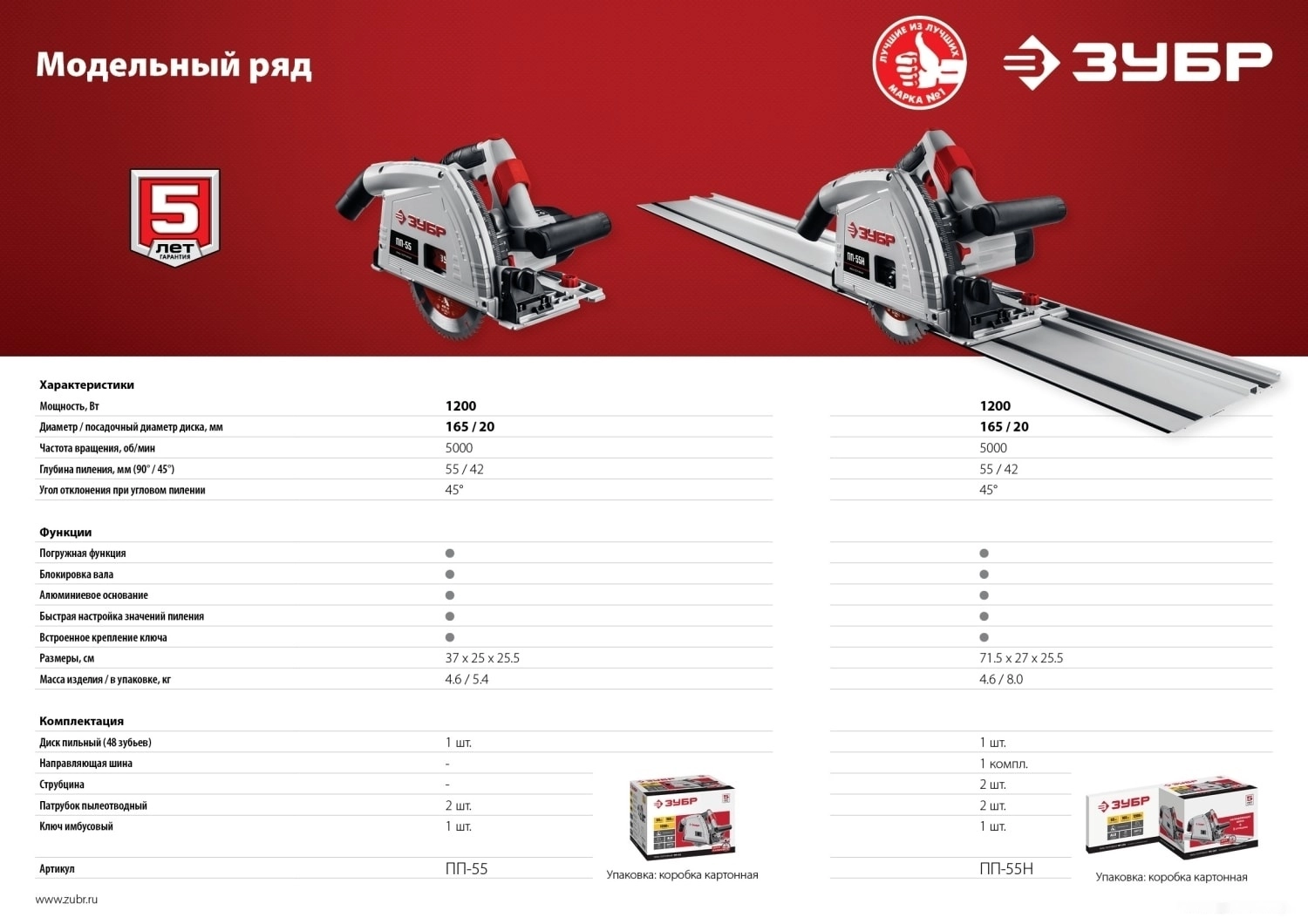 ПроизводителиПила циркулярная погружная ПП-55 (1200 Вт, диск 165х20 мм, до 55 мм, кор.) ЗУБР