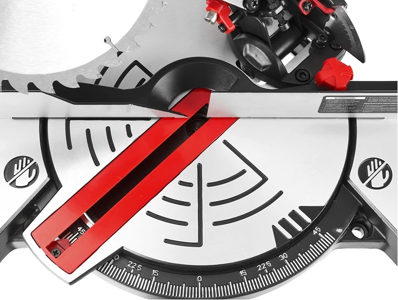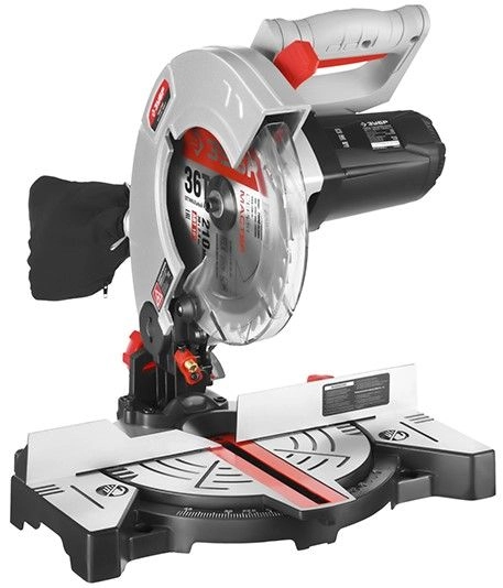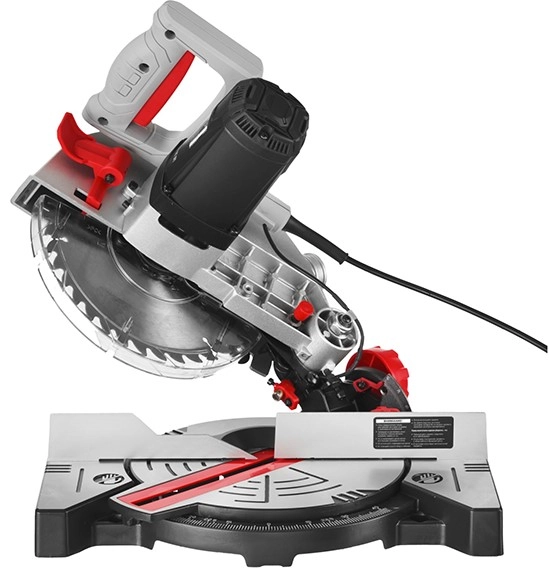 - Фиксирующийся в любом положении поворотный стол и удобная регулировка наклона облегчают установку угла пиления;