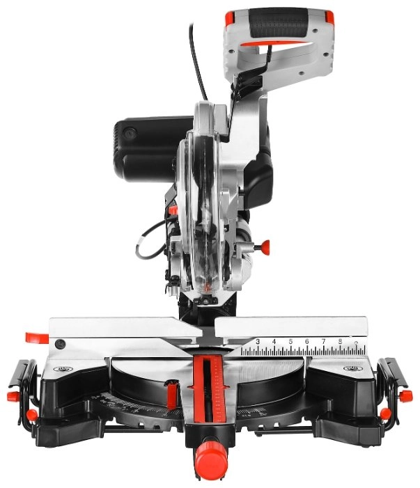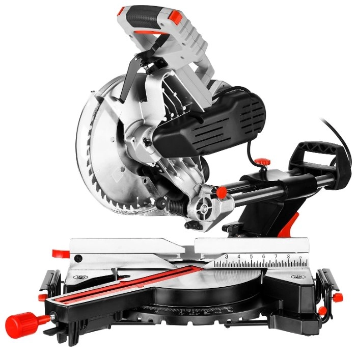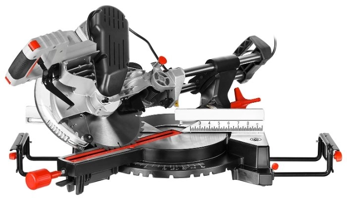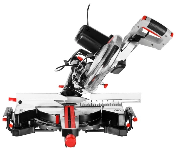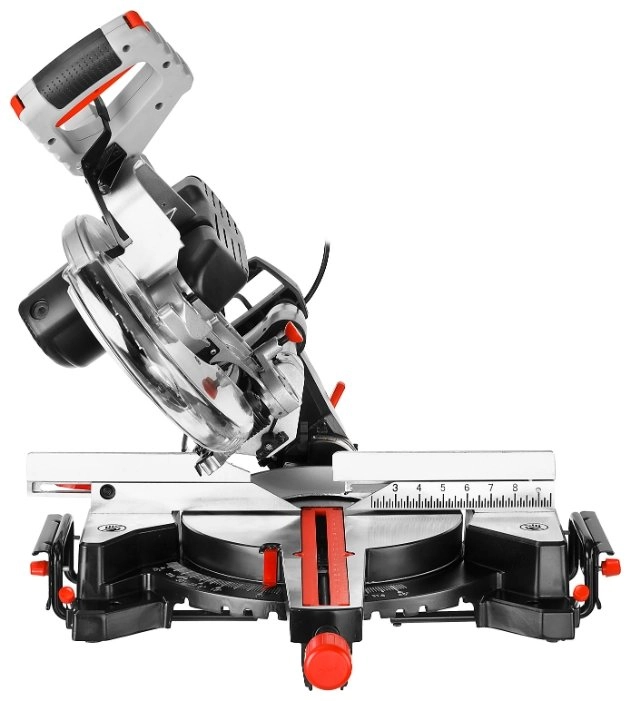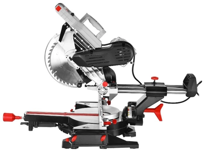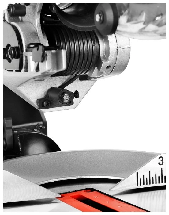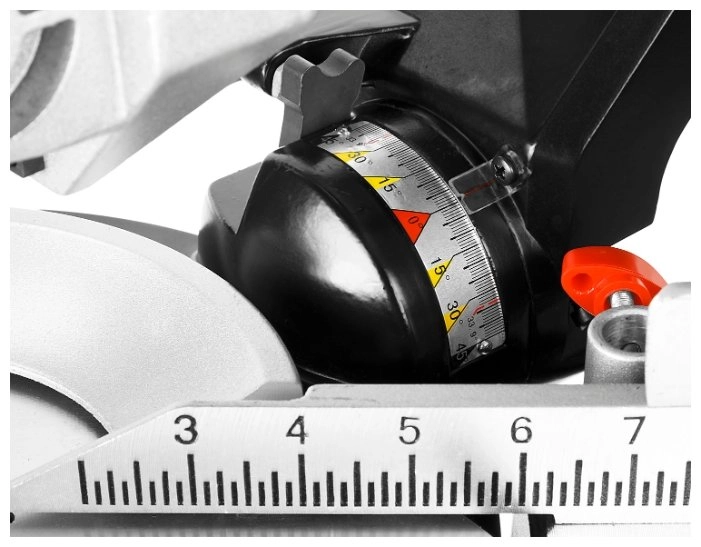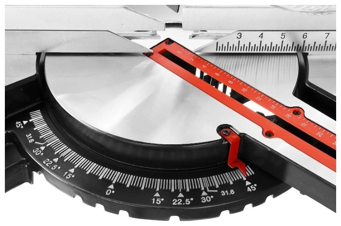 - Фиксирующийся в любом положении поворотный стол и удобная регулировка наклона облегчают установку угла пиления;