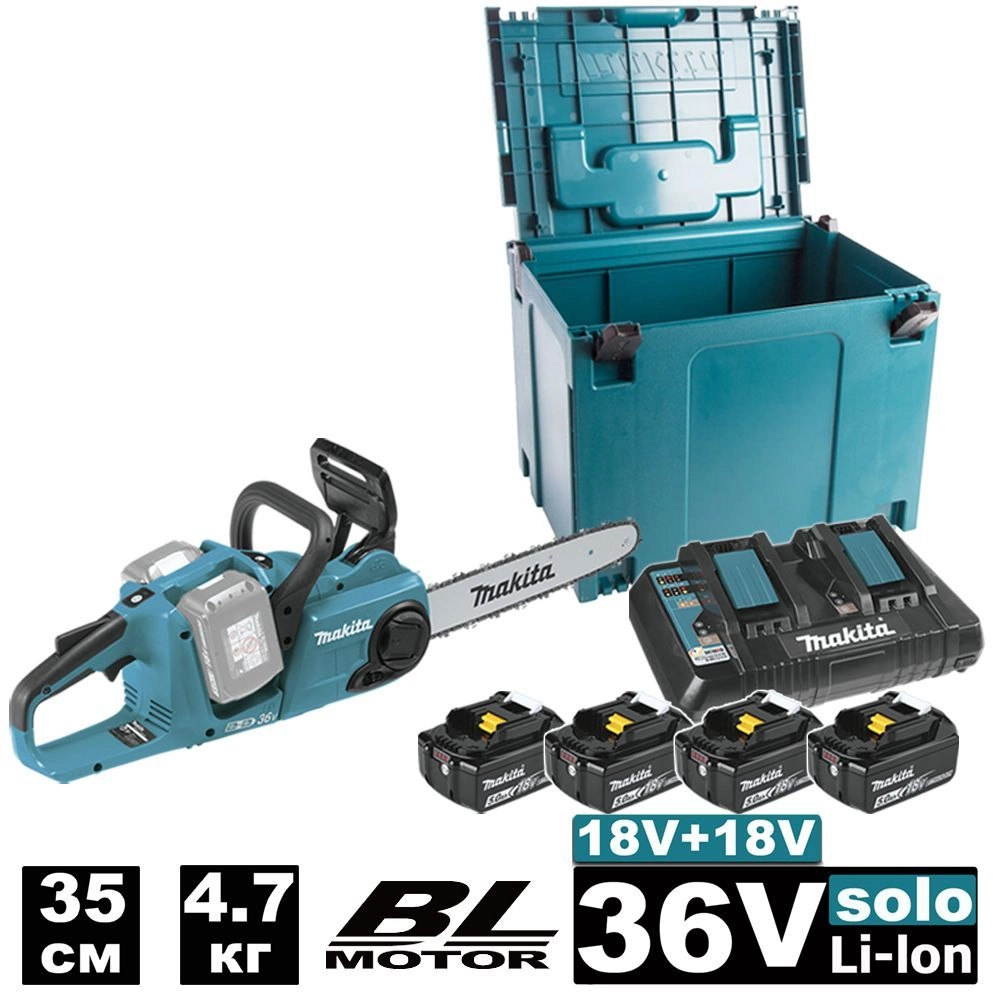 ПроизводителиПила цепная аккумуляторная + набор PSK MKP3PT184 (5,0Ачx4шт, DC18RD, MAKPAC) (DUC353PT4) MAKITA