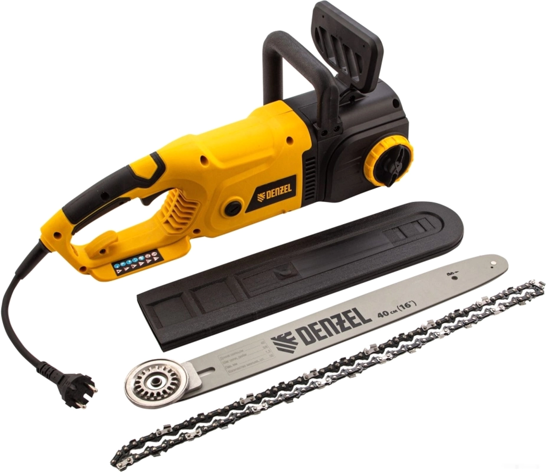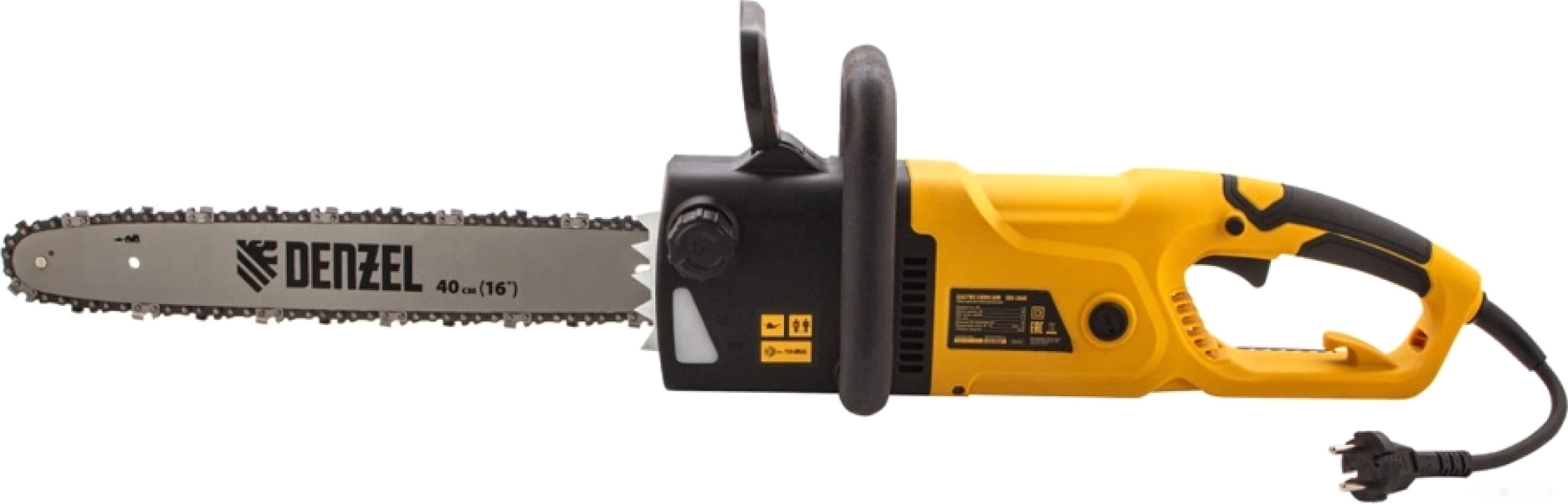 ПроизводителиПила цепная элект. EDS-2000, 2кВт,продольная,шина 40см,шаг 3/8, паз 1,3мм, 56зв Denzel