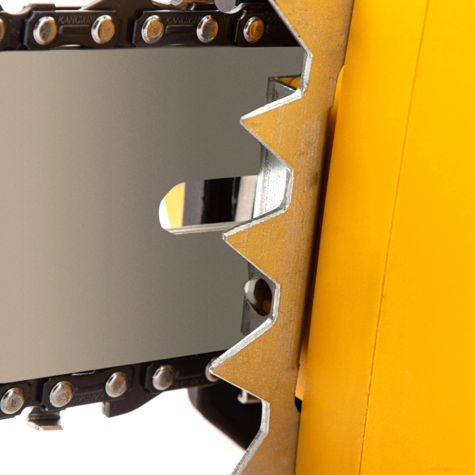 Процесс запуска максимально упрощен — не нужно готовить топливную смесь, достаточно подключить пилу к сети, и она будет готова к работе.