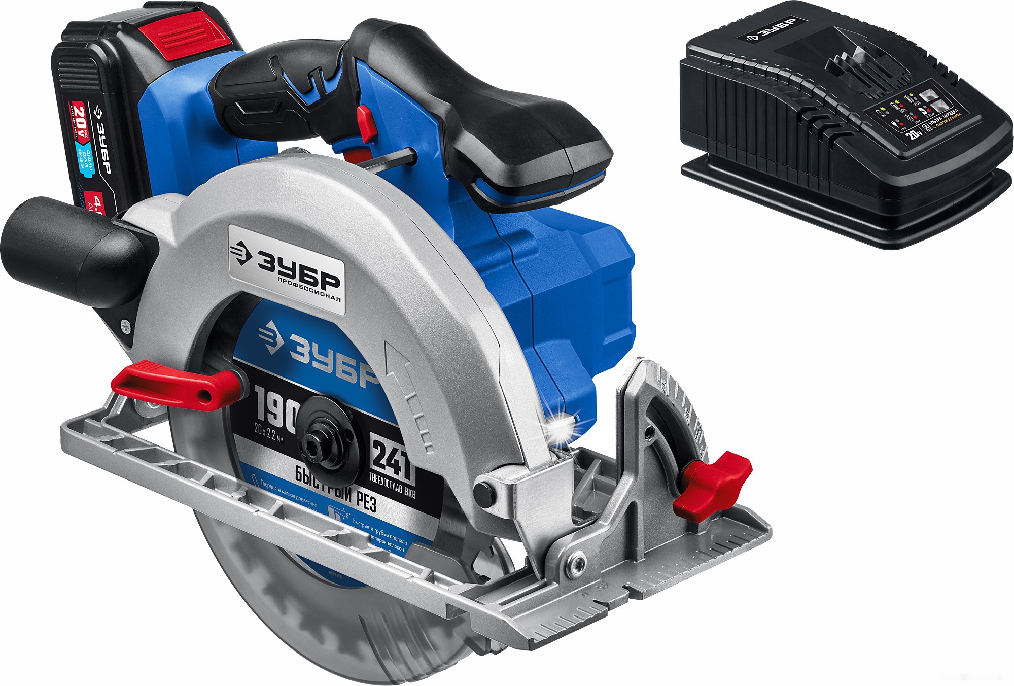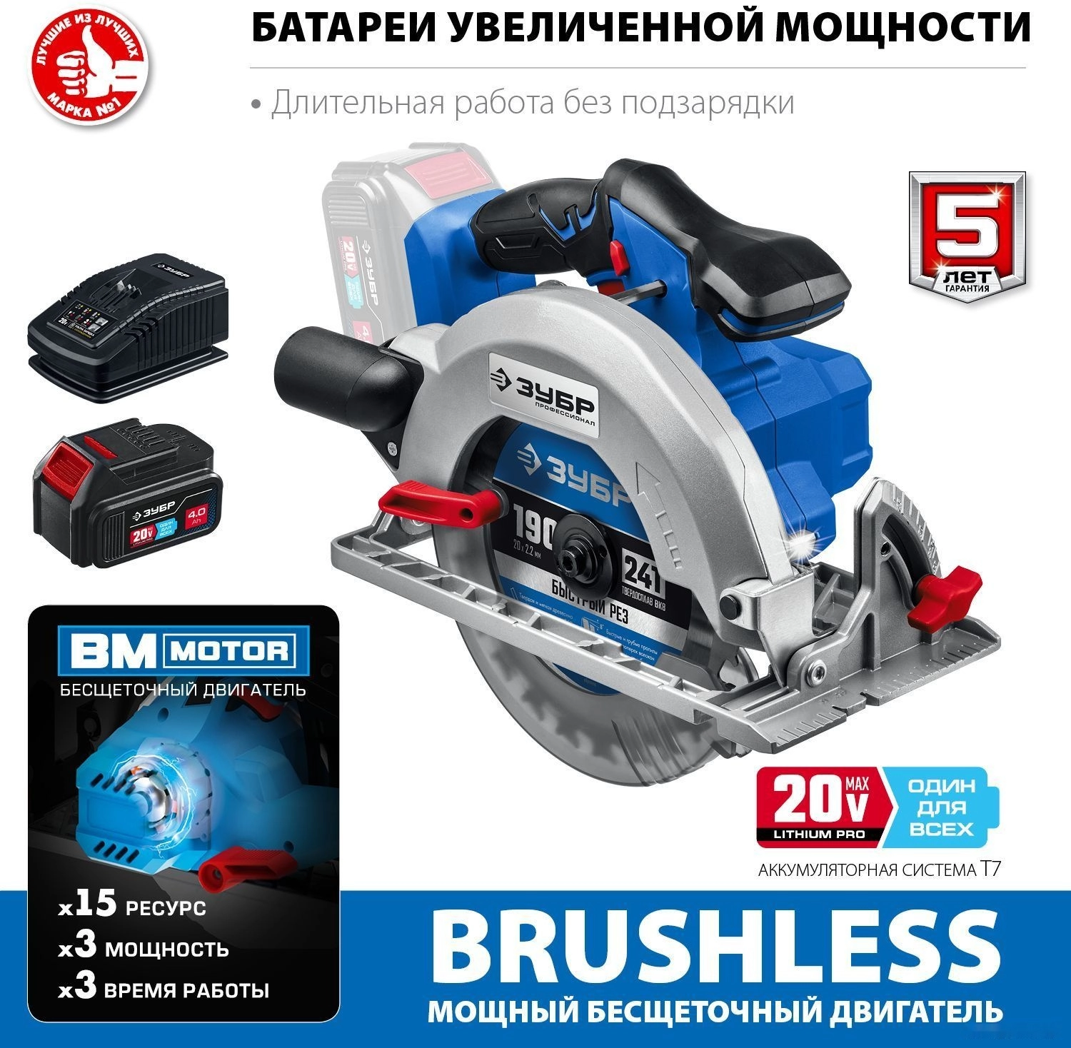 ПроизводителиПила циркулярная аккум. CPB-190-41 (20.0 В, 1акк. х 4А/ч, диск 190x20 мм, кор.) "Профессионал" ЗУБР