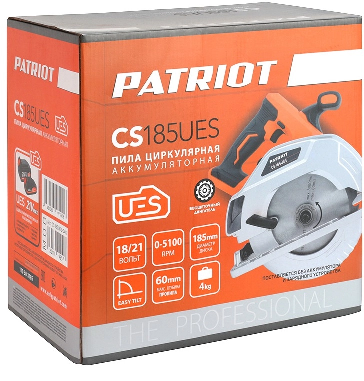 ПроизводителиПила циркулярная аккум. CS 185 UES (21В Li-lon наклон 45° глуб. пропила 46/60мм) PATRIOT / EXPERT