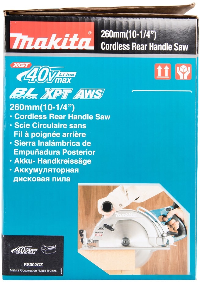 ПроизводителиПила циркулярная аккум. RS 002 GZ (40.0 В, без АКБ и ЗУ, диск 260x30 мм, кор.) MAKITA
