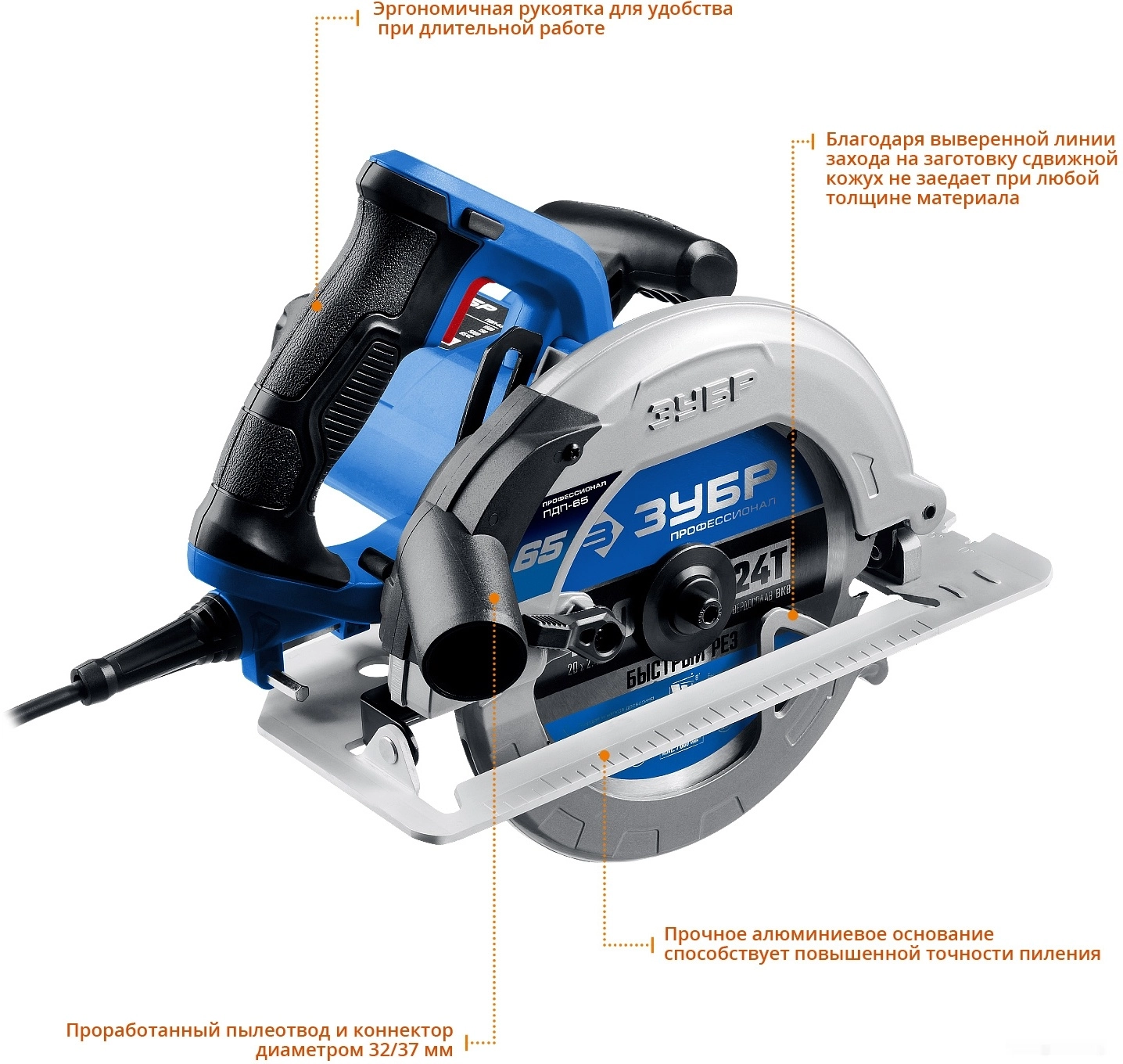 ПРОФИУровень качества. При классификации продуктов, имеющих схожее наименование, но обладающие различными потребительскими свойствами мы приняли следующий Вес факторов: 80% - подтвержденный ресурс, 15% - заявленная производительность/скорость, 5% - субъективные ощущения потребителя. ПодробнееПила циркулярная ПДП-65 ЗУБР, с повышенной мощностью двигателя и увеличенным диаметром диска обеспечивают легкое пиление древесины любой породы на большие глубины.