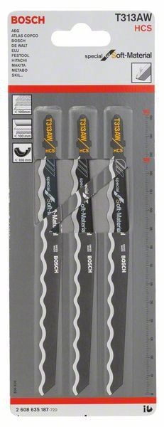 ПроизводителиПилка лобзиковая T 313 AW, HCS (картон, кожа)(-1-)(2 608 635 187) BOSCH