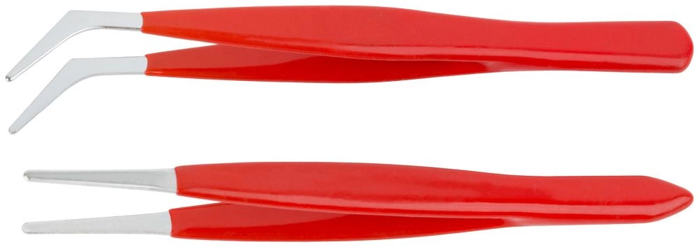 В наборе: пинцет прямой- 115 мм + пинцет с захватом под углом 45°-120 мм. Материал: нержавеющая сталь, ПВХ ручка. Упаковка: блистер.Производитель: