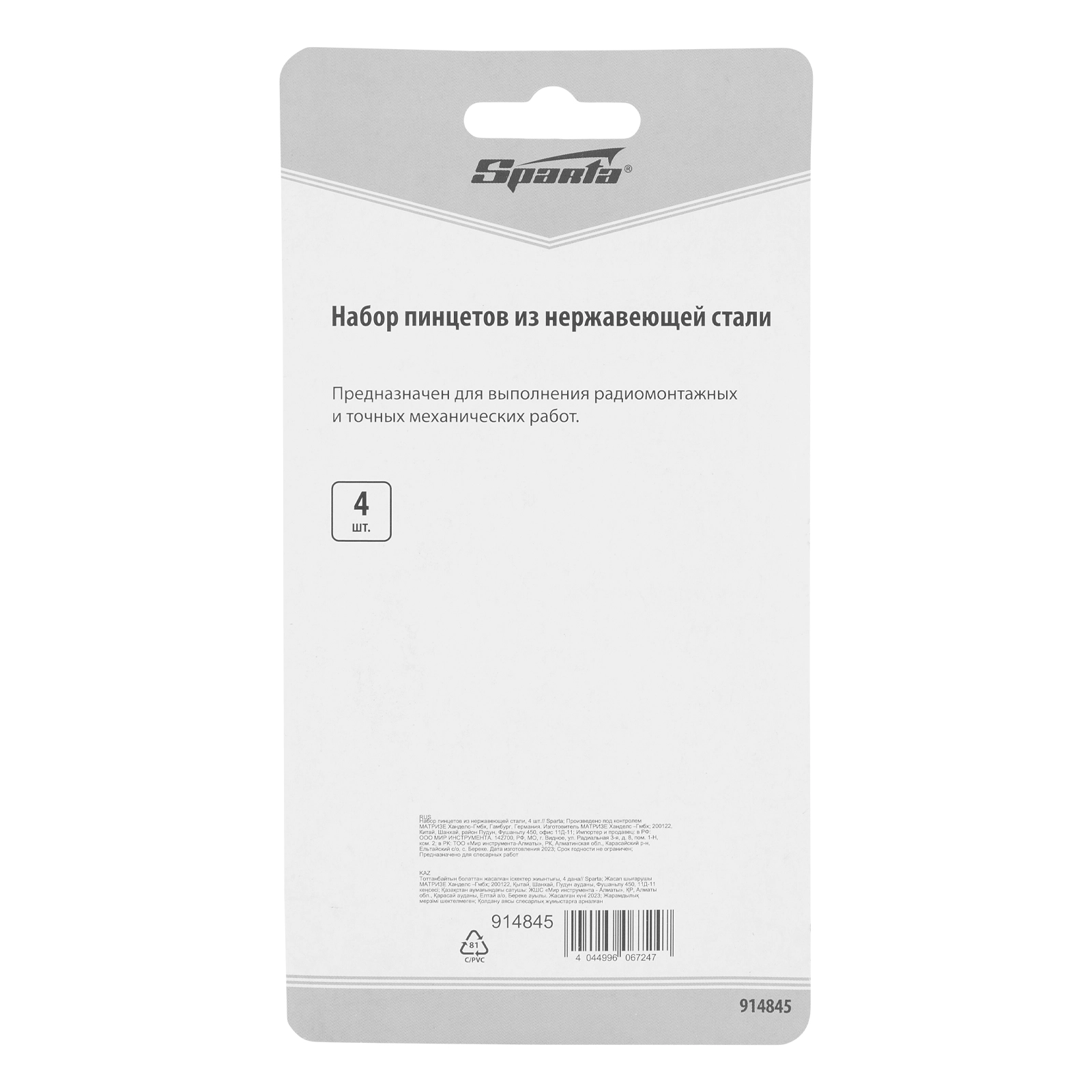 ПроизводителиПинцеты набор 4шт., нержавеющая сталь (914845) SPARTA