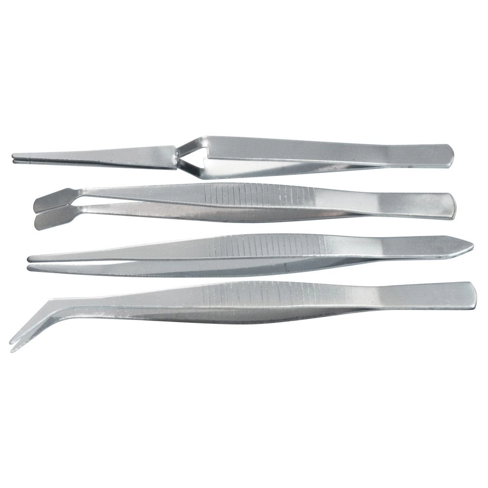 Набор включает в себя 4 пинцета для удержания мелких деталей. Инструменты прямой и изогнутой формы пригодятся мастерам, работающим с элементами, которые нельзя или неудобно захватывать руками. Набор оптимален для хенд-мейда, ремонта бытовой техники, часов и т.д.