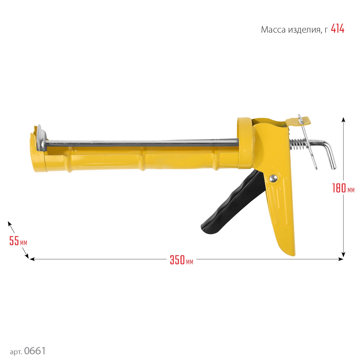 ХарактеристикиАртикул 0661Бренды StayerСтрана производства КитайТип изделия Пистолет для герметикаОбъем, мл 310Вес 0.414пистолет для герметиков подходит для работы с картриджами объемом 310 мл, имеет полуоткрытую