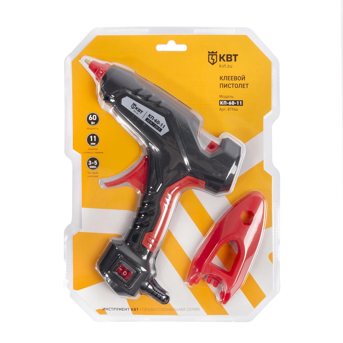 ПроизводителиПистолет клеевой 60 Вт с диаметром стержня 11 мм КП-60-11 серия ПРОФИ (87966) КВТ