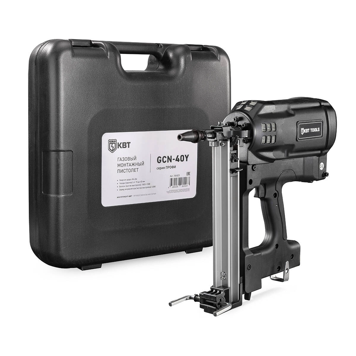 Газовый монтажный пистолет GCN-40Y серия ПРОФИ КВТ арт. 104523 — сферы применения для общестроительный монтаж, электромонтаж, монтаж инженерных систем, монтаж утеплителя к бетону, металлу, кирпичу.