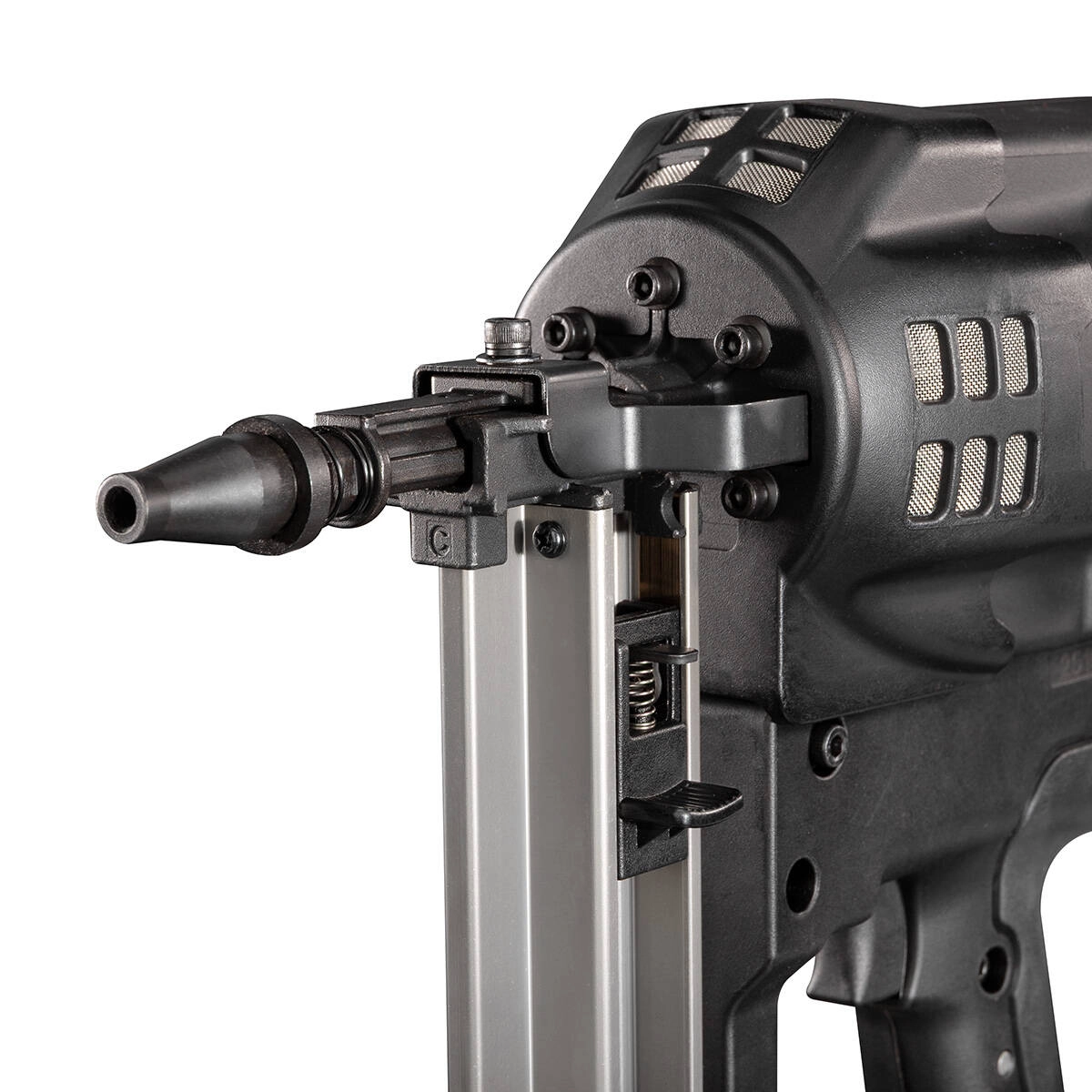 - Удобная и быстрая бесключевая регулировка заглубления гвоздя