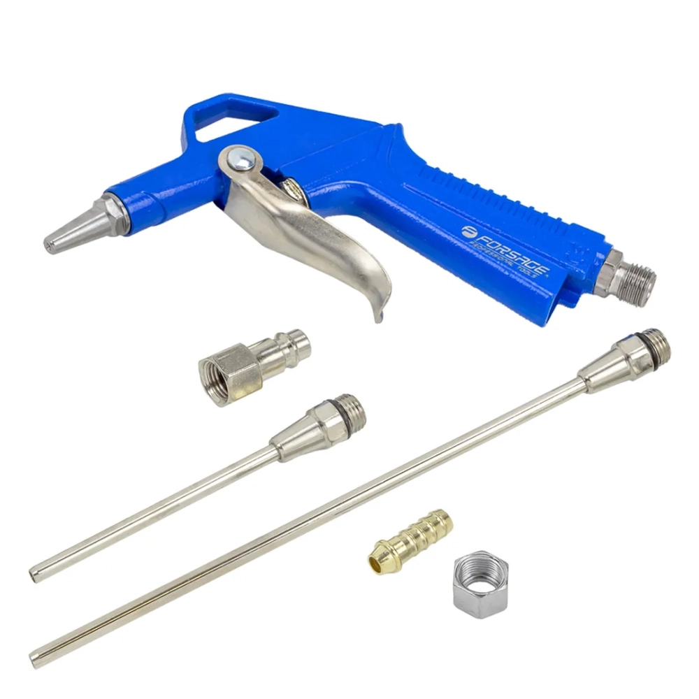 Пистолет обдувочный - это инструмент для очистки струей воздуха. В комплекте идут 3 сопла на 20, 90 и 165мм. Пистолет позволяет добиться точечной и направленной очистки, благодаря узкому и сфокусированному потоку сжатого воздуха, что особенно полезно при работе с мелкими или сложными деталями, для очистки или удаления пыли, грязи, опилок, остатков и других мелких частиц с поверхностей или из узких пространств. Продувочный пистолет снабжен механизмом для подачи сжатого воздуха. Ручка пистолета имеет удобную форму для удержания и контроля инструмента. Применяется для очистки двигателей, салона автомобиля, вентиляционных отверстий и других труднодоступных мест от пыли, песка и других загрязнений.Производитель: Форсаж Лтд., Тайвань