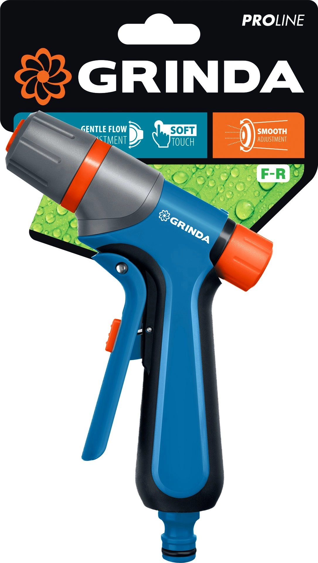 ПроизводителиПистолет полив, курок спереди, двухкомп, плавная регулировка напора,F-R PROLin(429121_z01) GRINDA