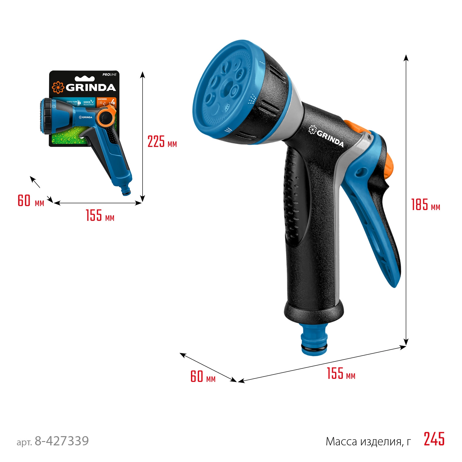 ПроизводителиПистолет-распылитель, 8 режимов, курок сзади, металл. с TPR (8-427339_z02) GRINDA