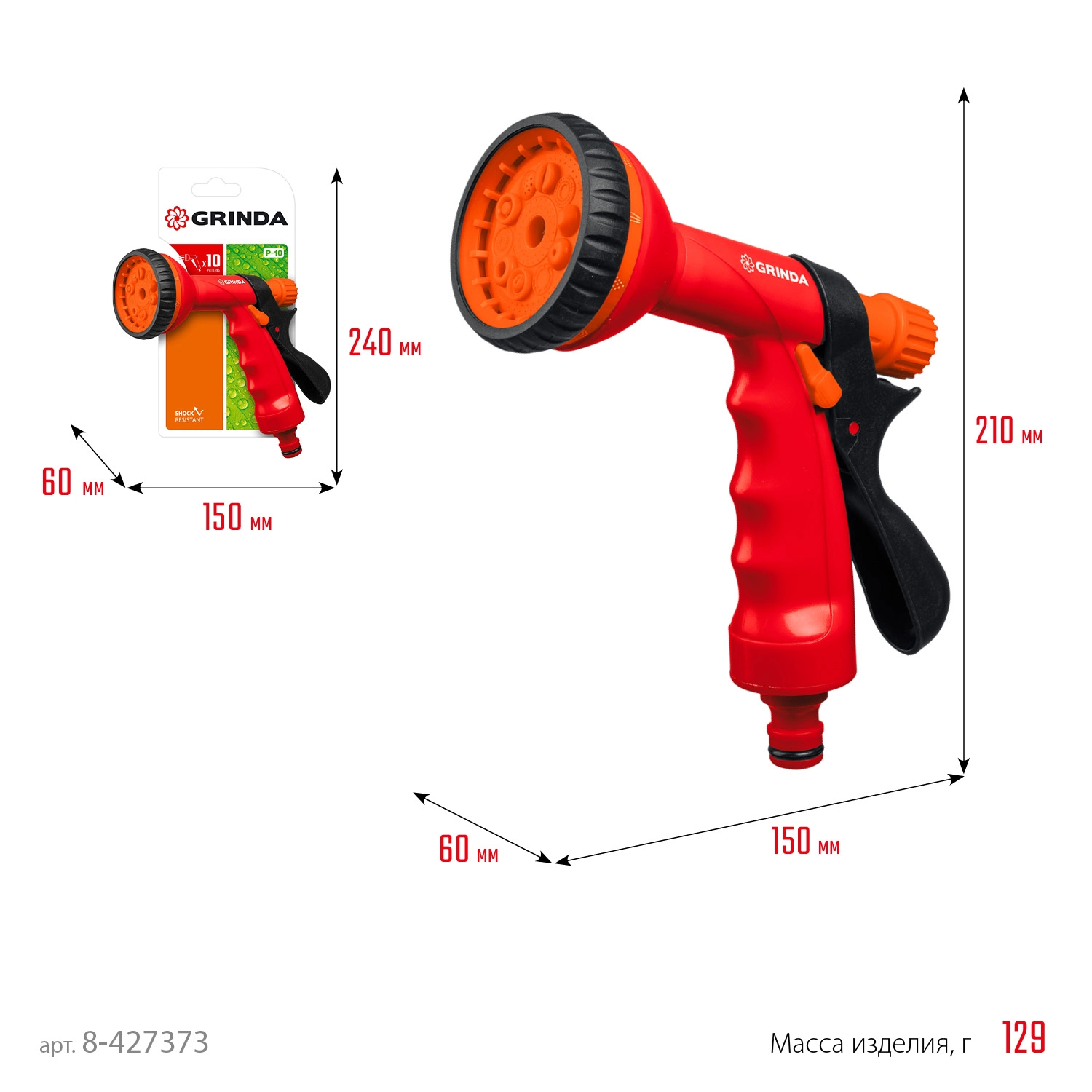 ПроизводителиПистолет-распылитель GRINDA "CLASSIC Quick-Connection System" пластиковый, 10-ти позиционный