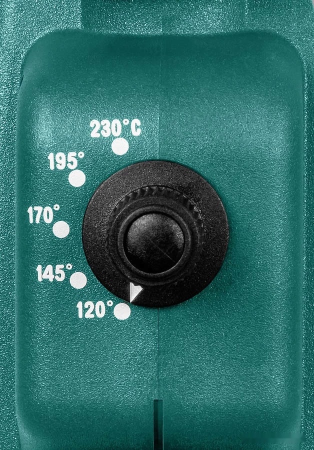 Регулятор температуры позволяет установить необходимую интенсивность нагрева от 120° до 230 °C.