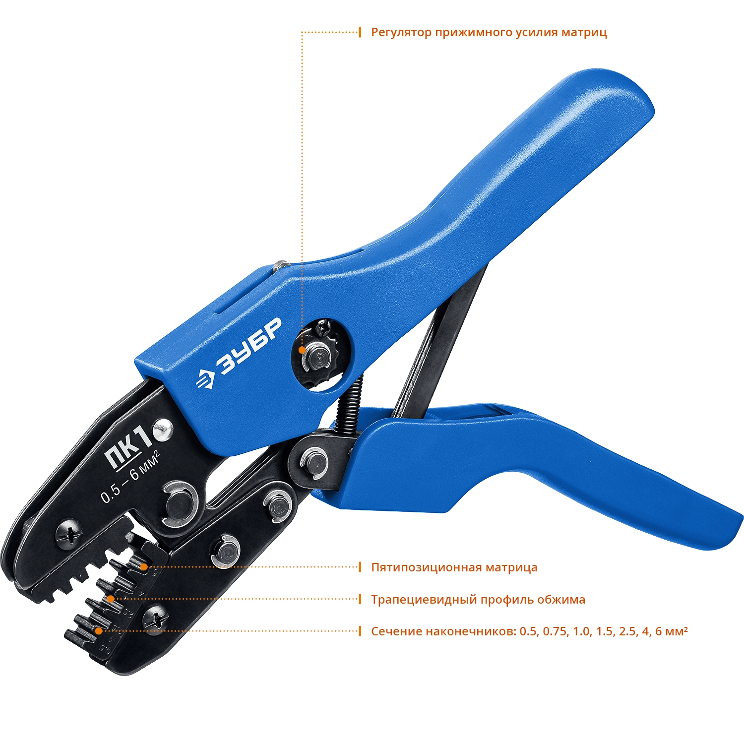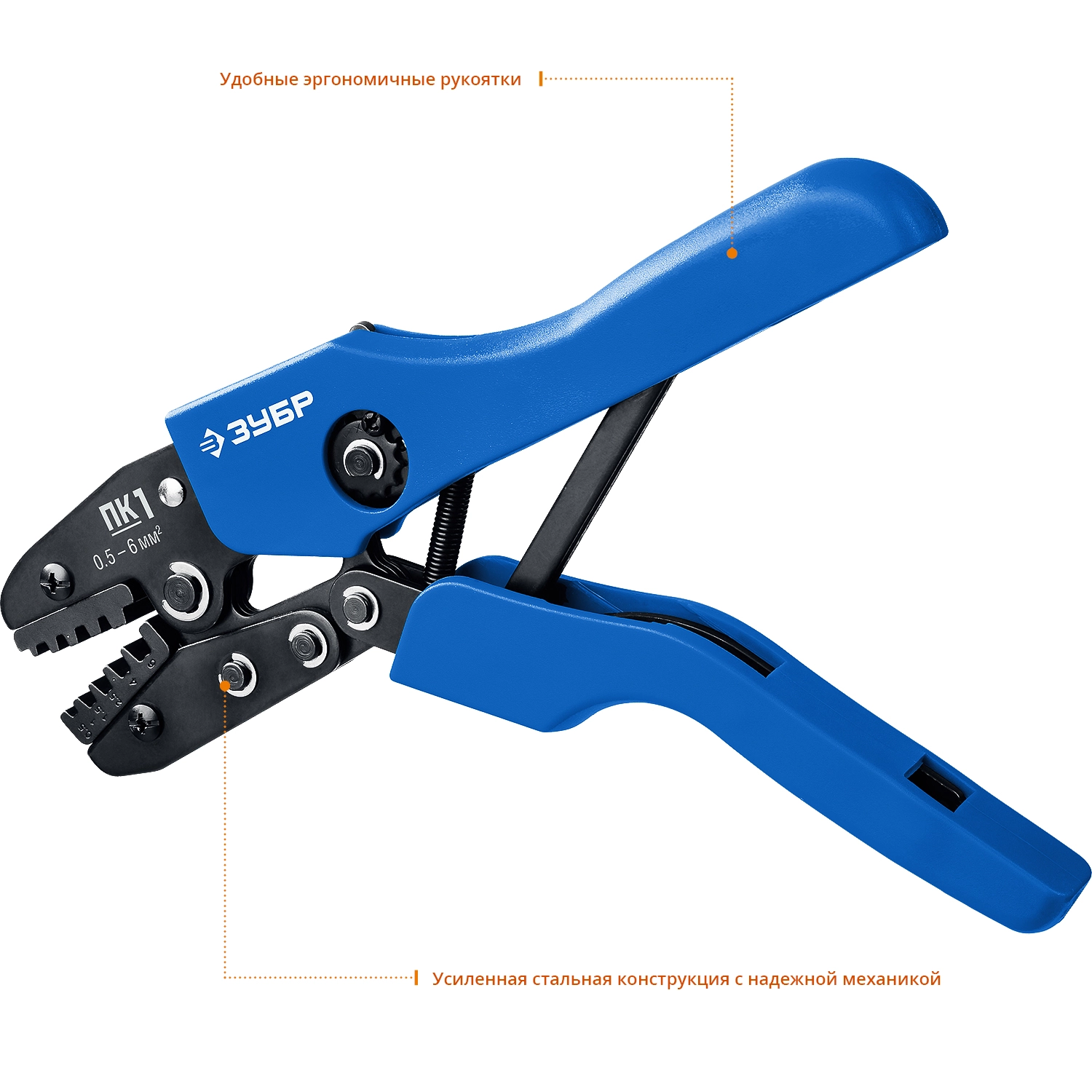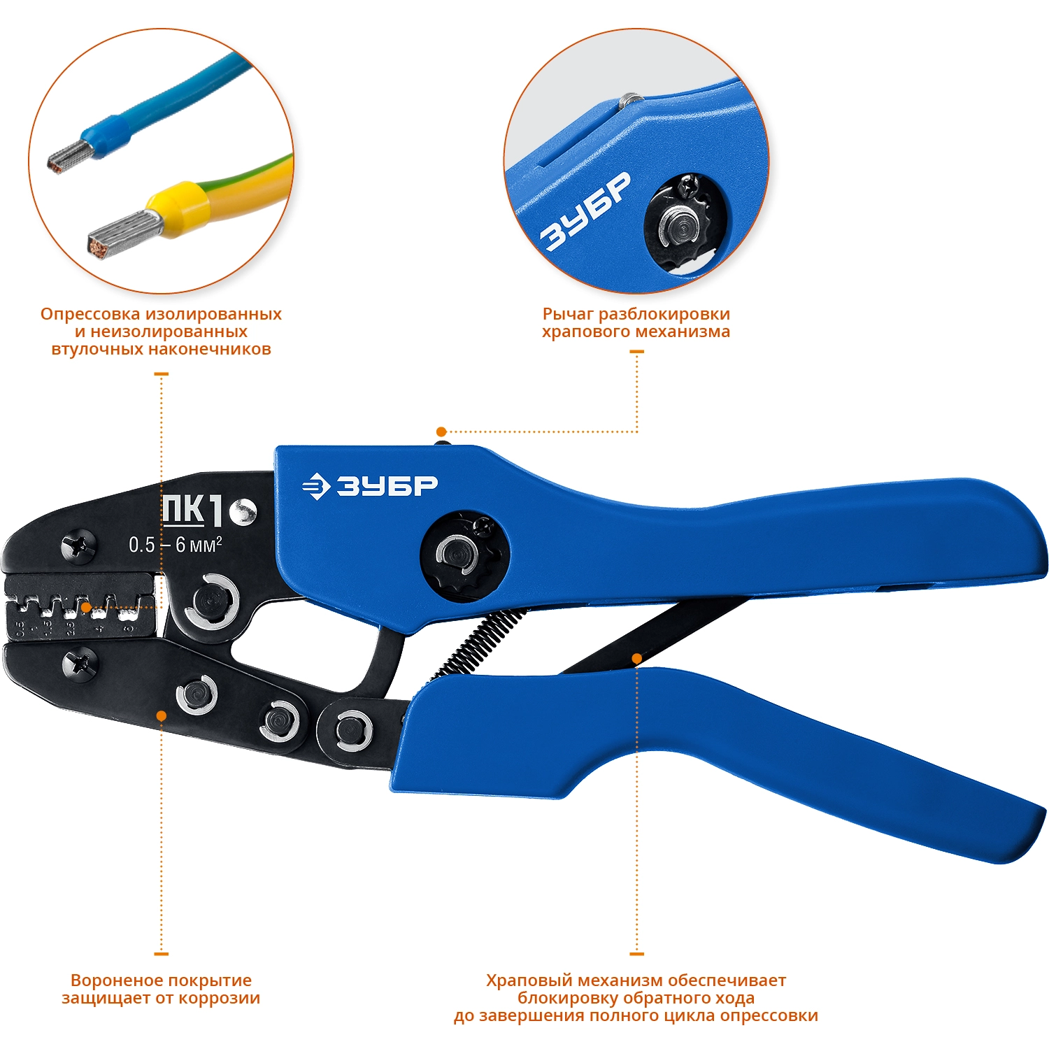 ПроизводителиПресс-клещи для втулочных наконечников 0.5-6мм.кв "ПК-1" "Профессионал" (45456-1) ЗУБР