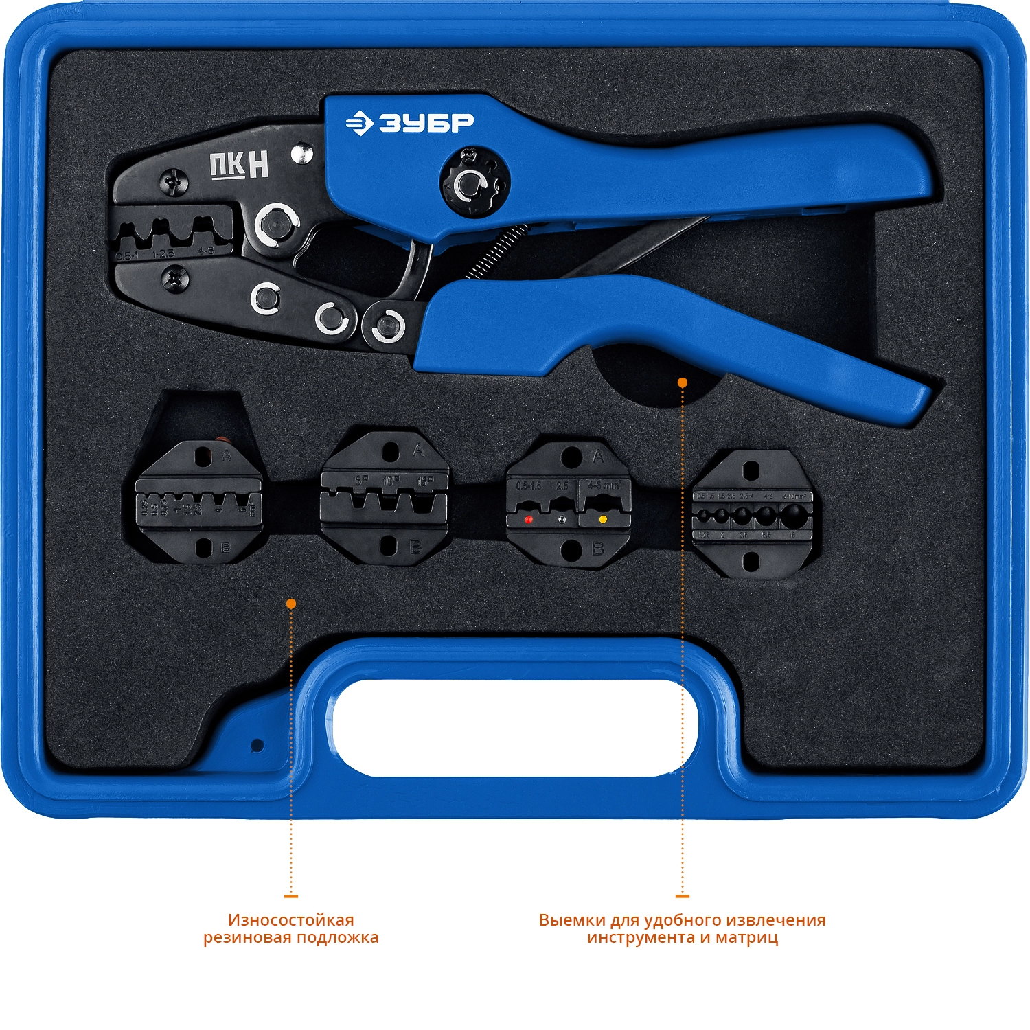 ПроизводителиНабор: пресс-клещи, 5 матриц, в кейсе, ПК-Н "Профессионал" (45455) ЗУБР