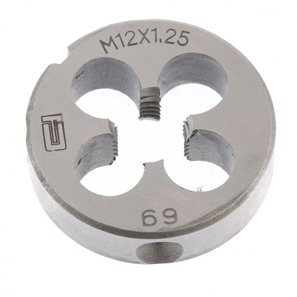 Плашка Сибртех 77030, М12 х 1,25 мм, поможет нарезать внешнюю метрическую резьбу.