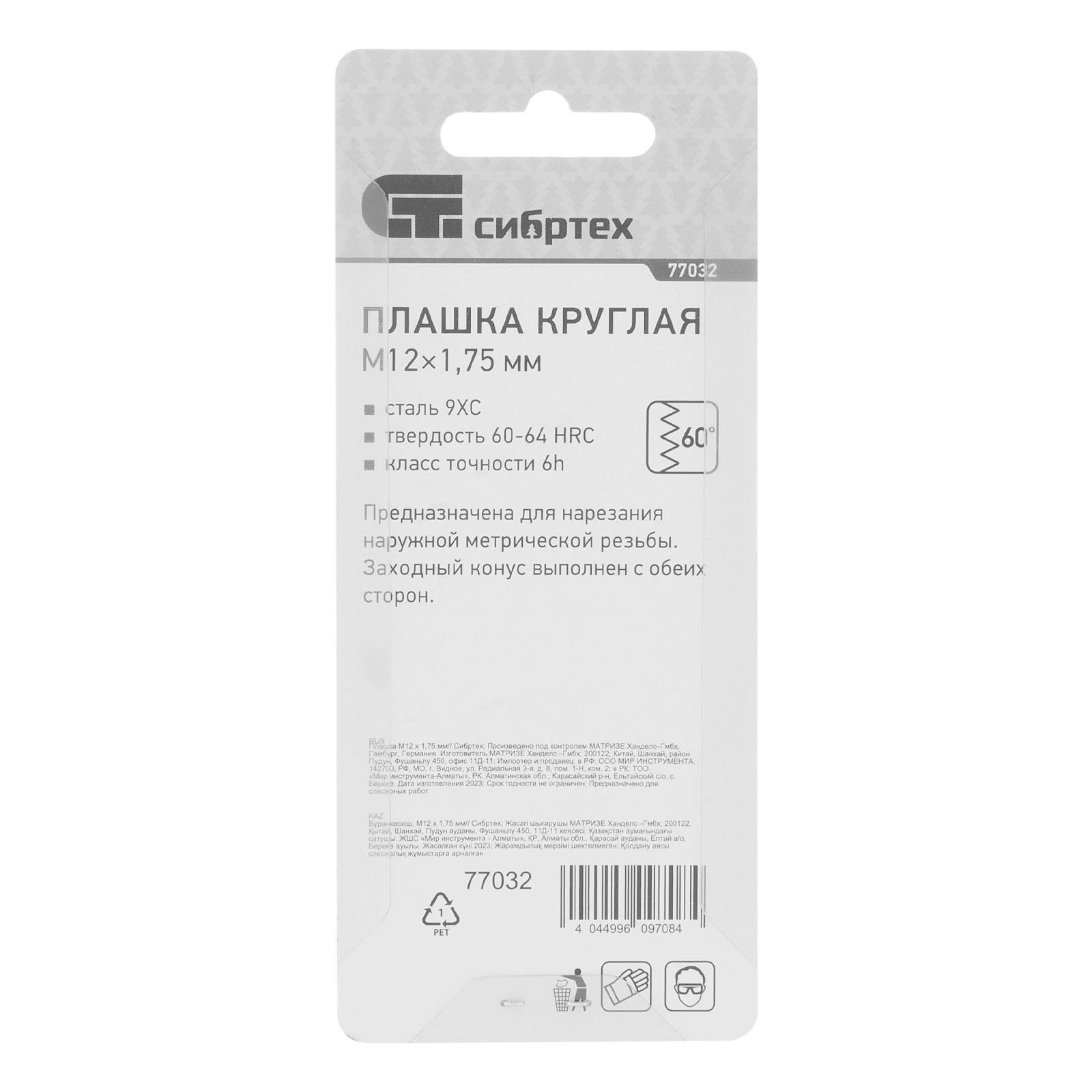 ПроизводителиПлашка метрическая М12 х 1,75 мм (77032) СИБРТЕХ