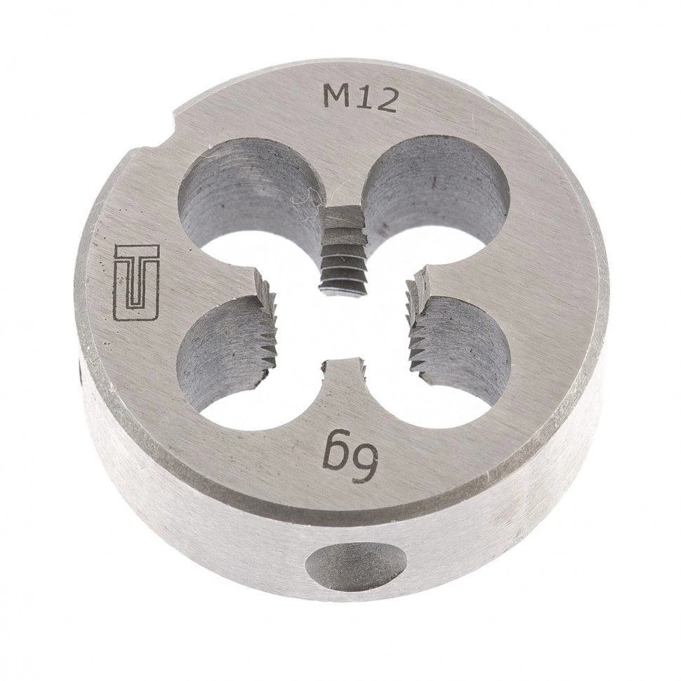 Плашка Сибртех 77032, М12 х 1,75 мм, поможет нарезать внешнюю метрическую резьбу.