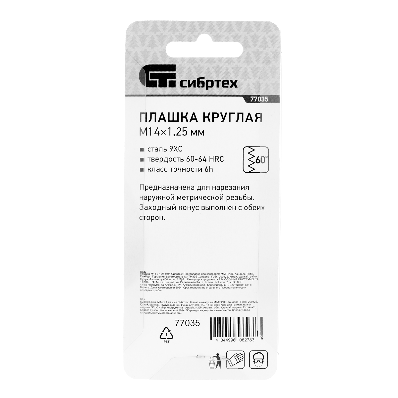 ПроизводителиПлашка метрическая М14 х 1,25 мм (77035) СИБРТЕХ
