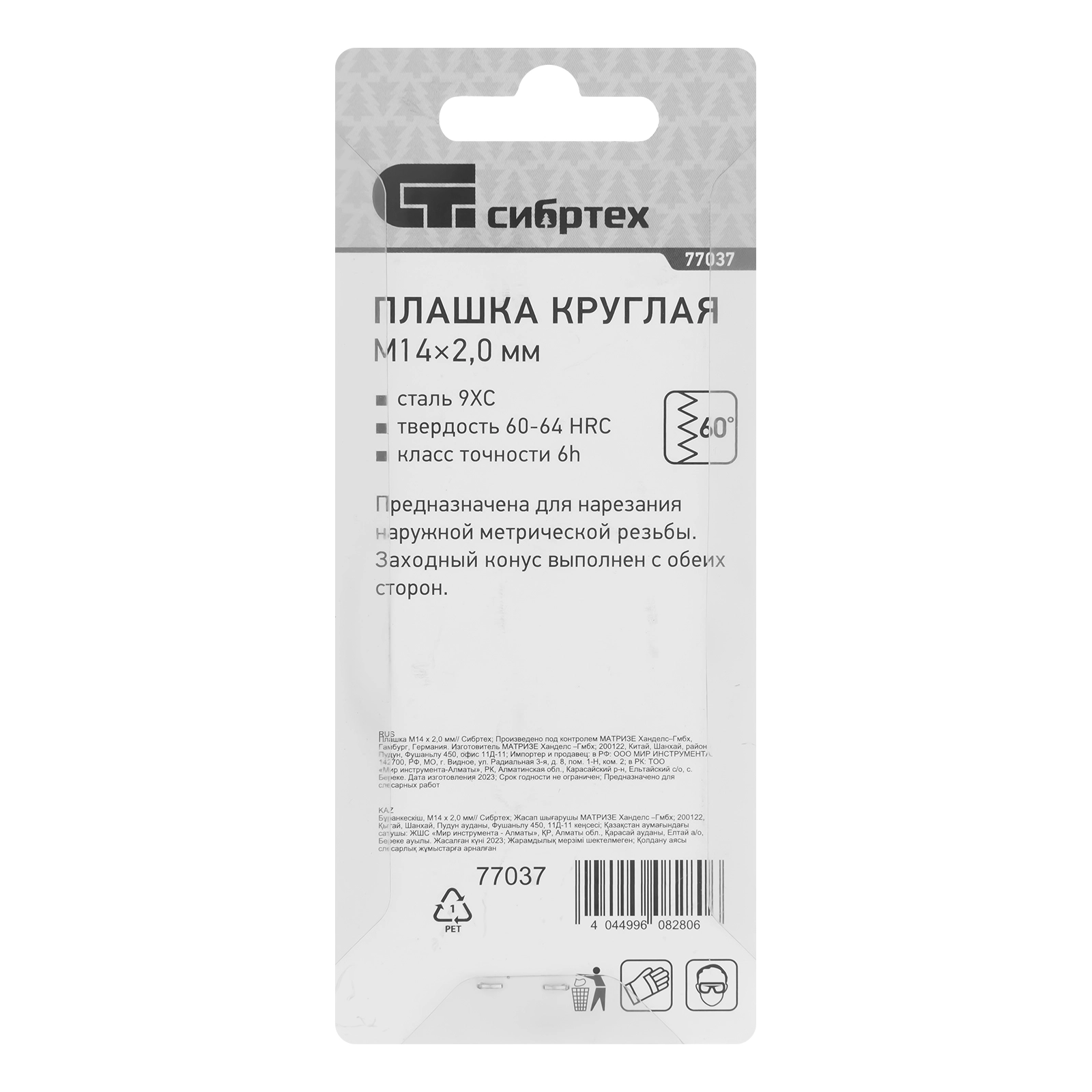ПроизводителиПлашка метрическая М14 х 2,0 мм (77037) СИБРТЕХ