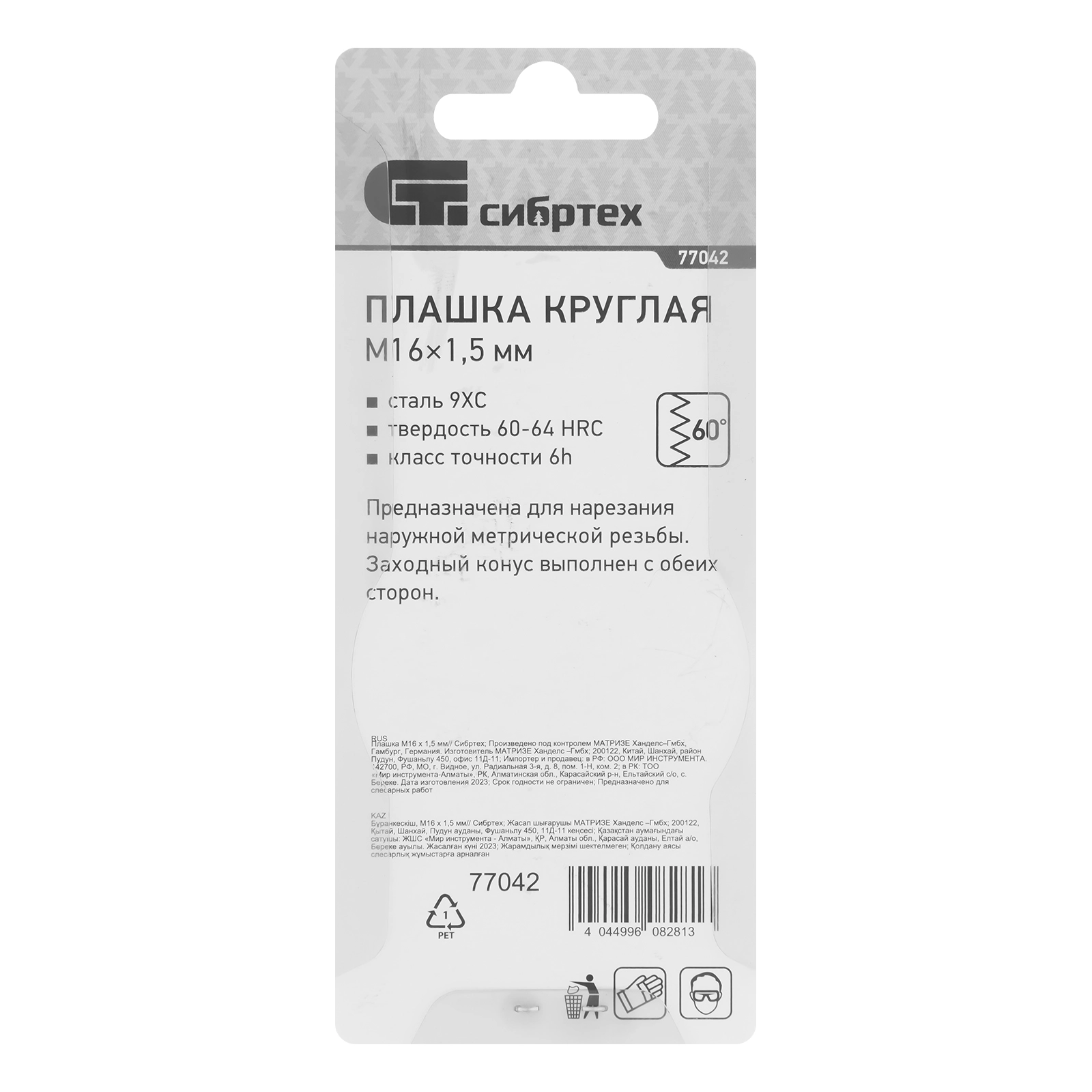ПроизводителиПлашка метрическая М16 х 1,5 мм (77042) СИБРТЕХ