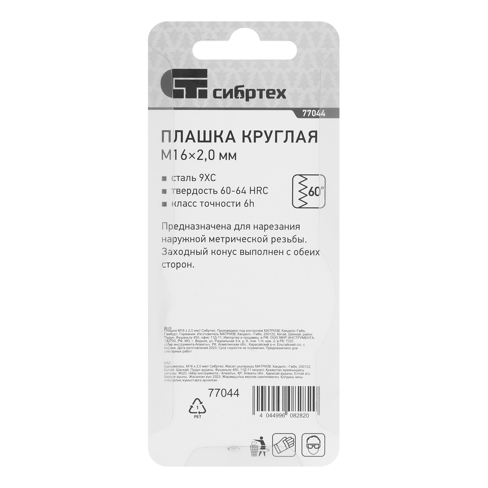 ПроизводителиПлашка метрическая М16 х 2,0 мм (77044) СИБРТЕХ
