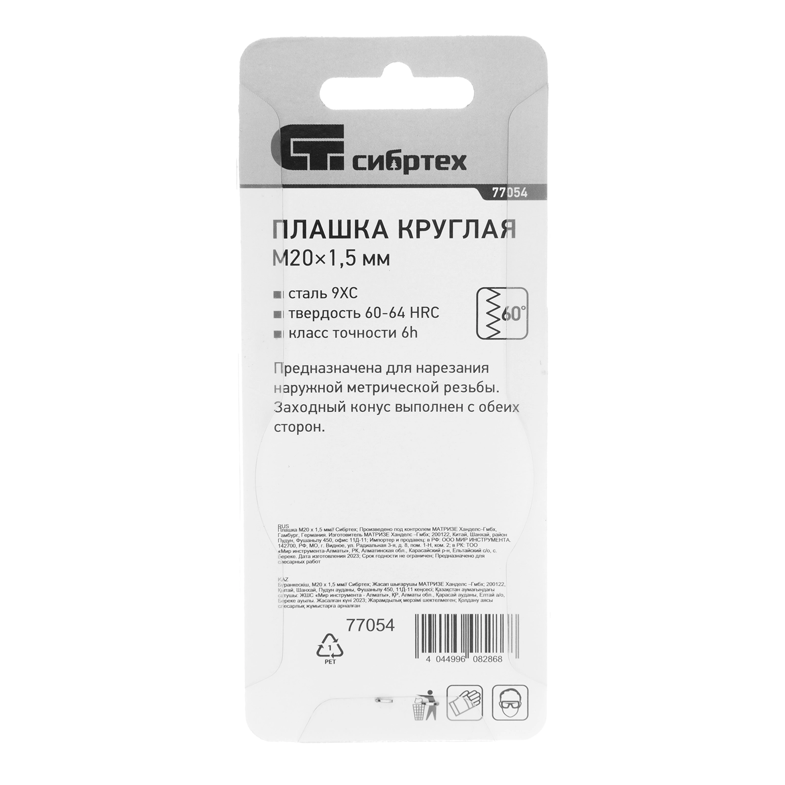 ПроизводителиПлашка метрическая М20 х 1,5 мм (77054) СИБРТЕХ