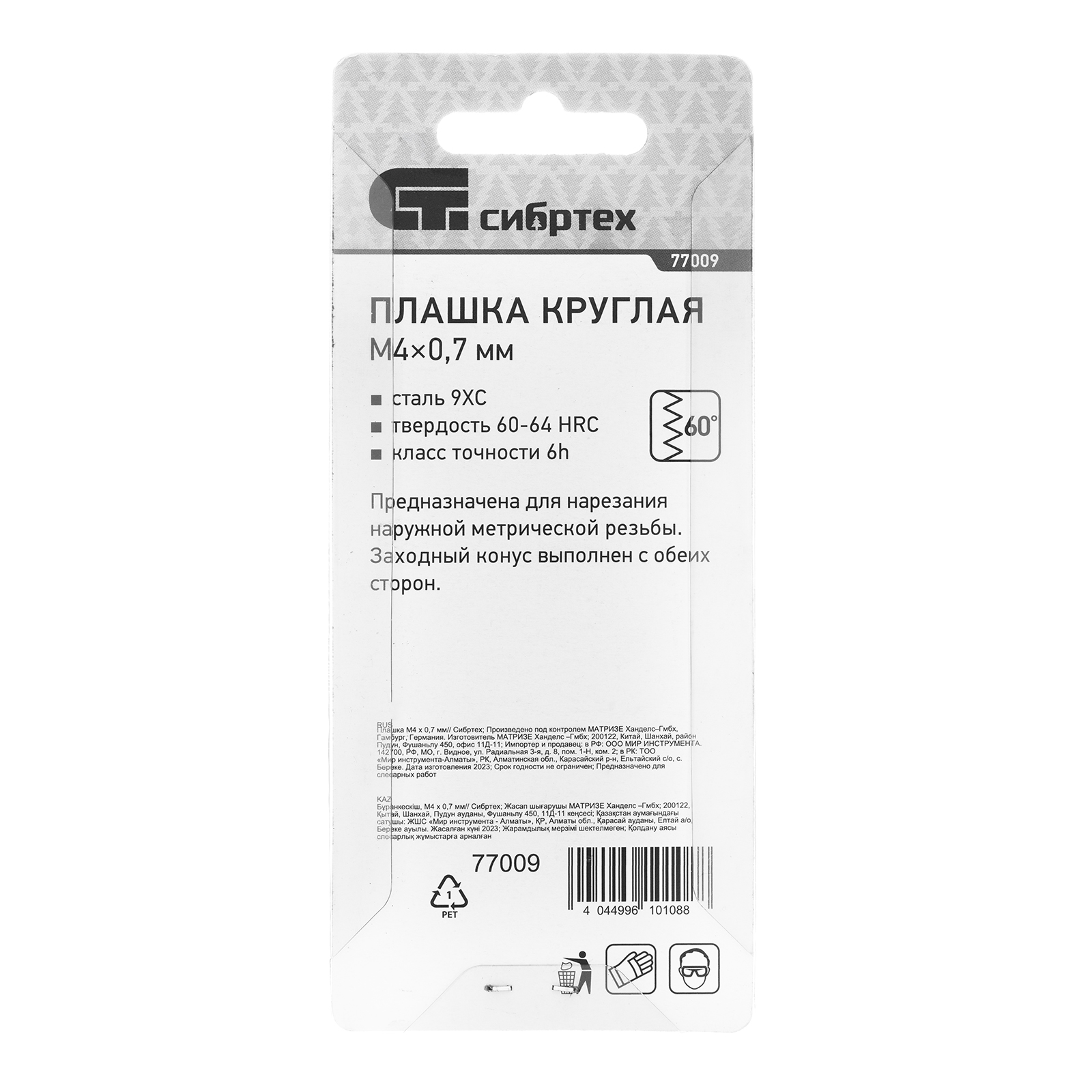 ПроизводителиПлашка метрическая М4 х 0,7 мм (77009) СИБРТЕХ