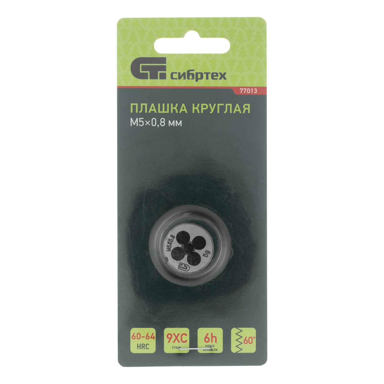 Плашка Сибртех 77013, М5 х 0,8 мм, поможет нарезать внешнюю метрическую резьбу.