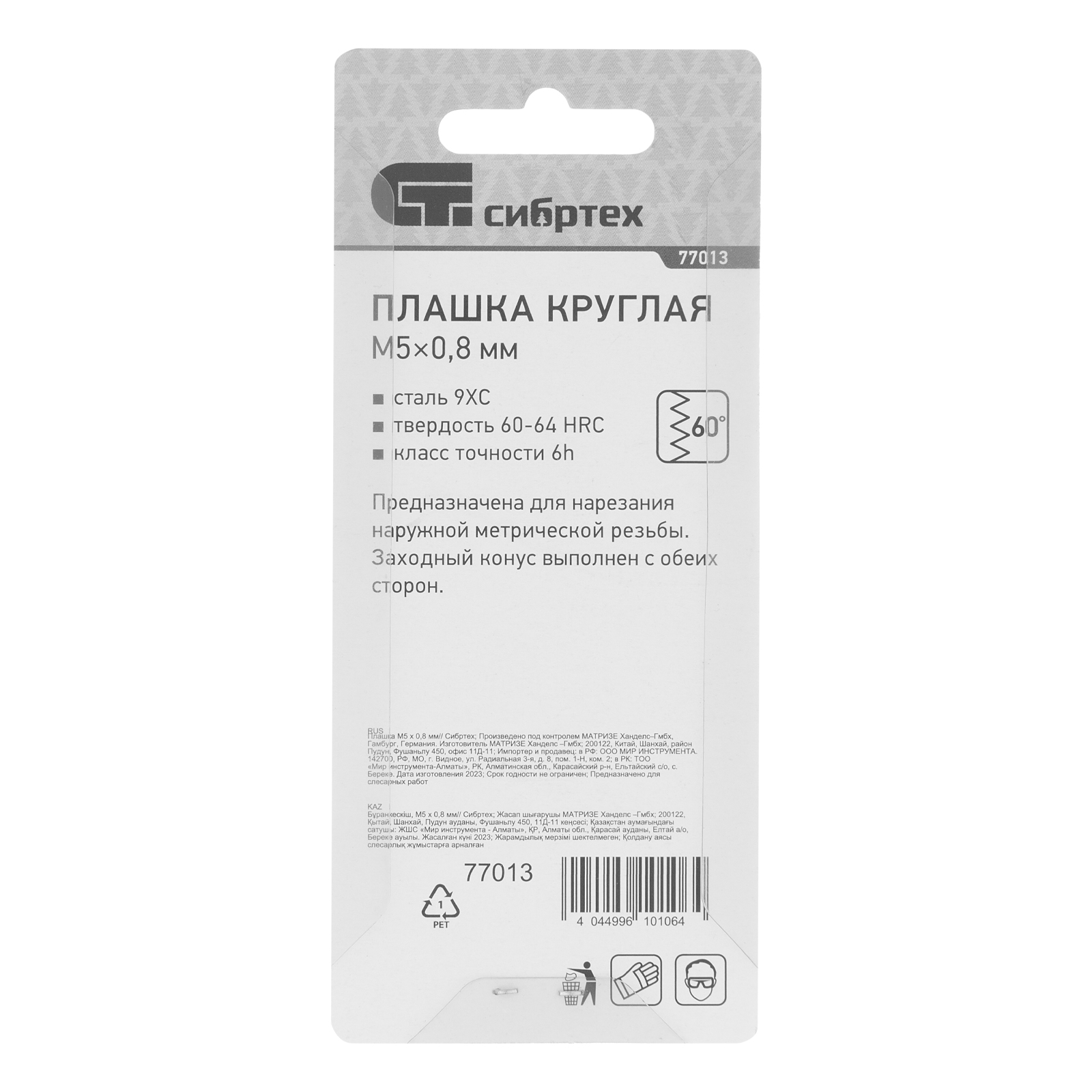 ПроизводителиПлашка метрическая М5 х 0,8 мм (77013) СИБРТЕХ