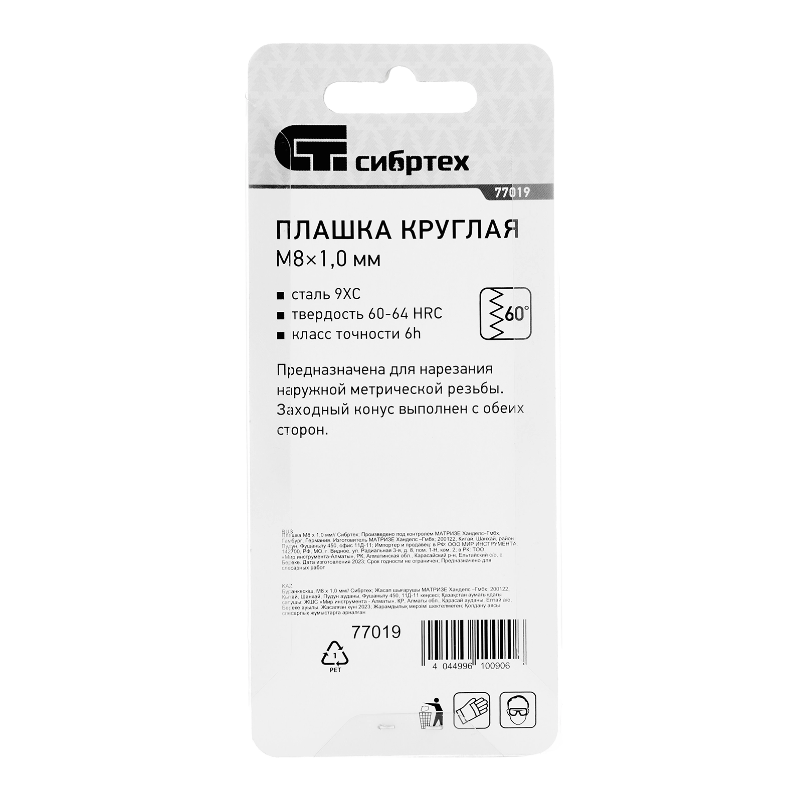 ПроизводителиПлашка метрическая М8 х 1,0 мм (77019) СИБРТЕХ